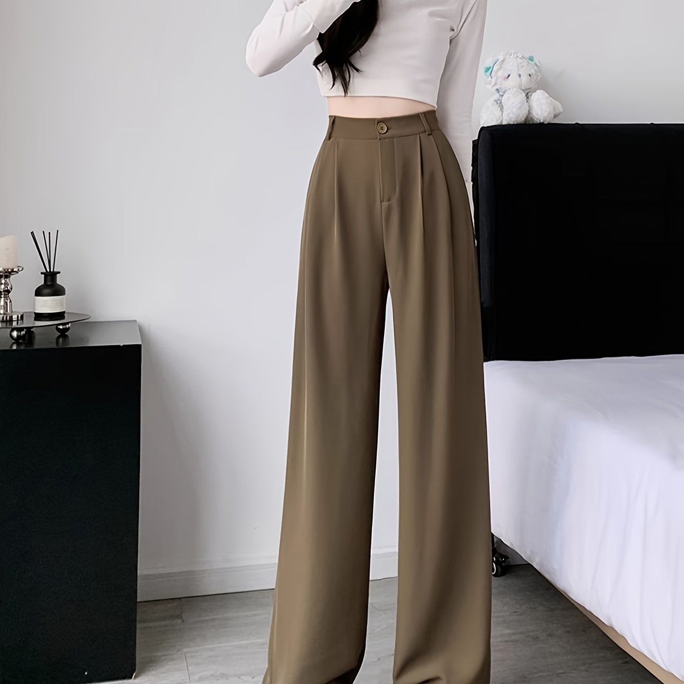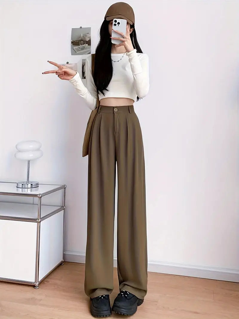 High-Waisted Straight Leg Pants for Women Breathable Wrinkle-Resistant Polyester Elastane