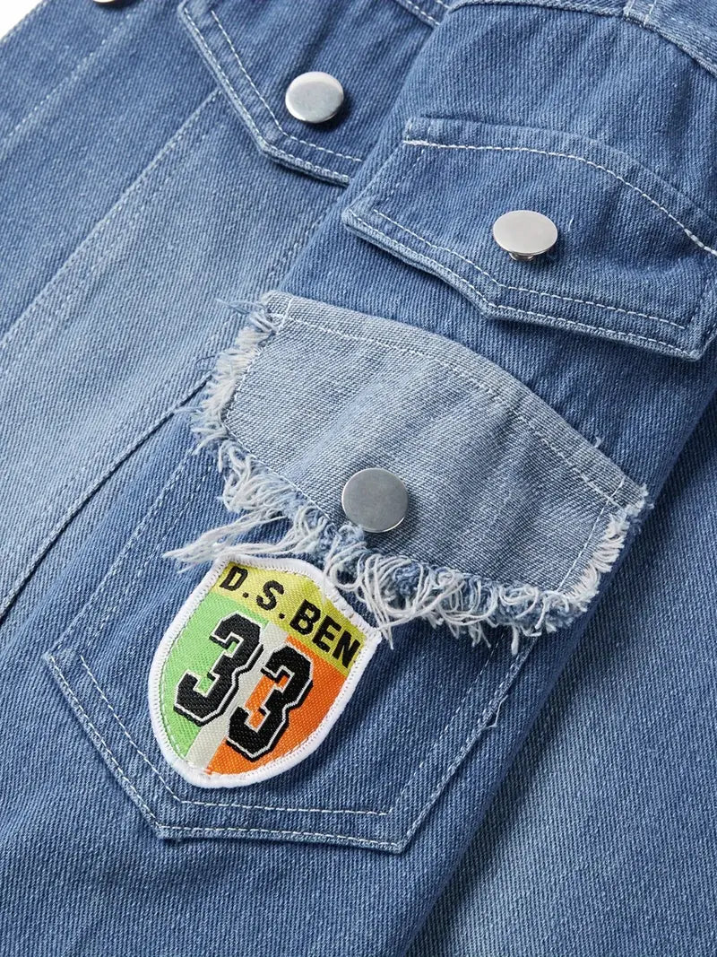 Hooded Denim Jacket for Kids with Cartoon Eagle Design Casual Fall Winter