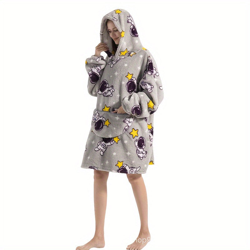 Hooded Fleece Blanket Robe for Adults Cozy Wearable Lounge Wrap