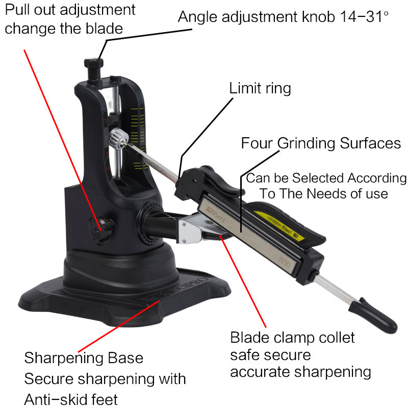 Knife Sharpener System with Fixed Angle and Diamond Whetstone for Chef's Knives