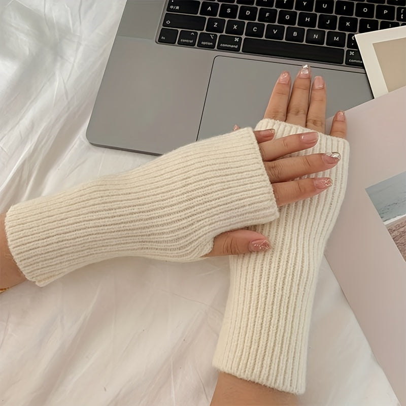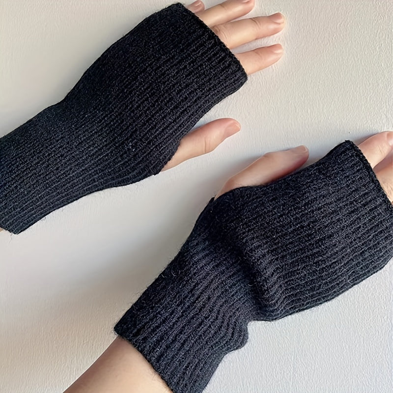 Solid Color Knitted Fingerless Gloves Touch Screen Compatible Warmth