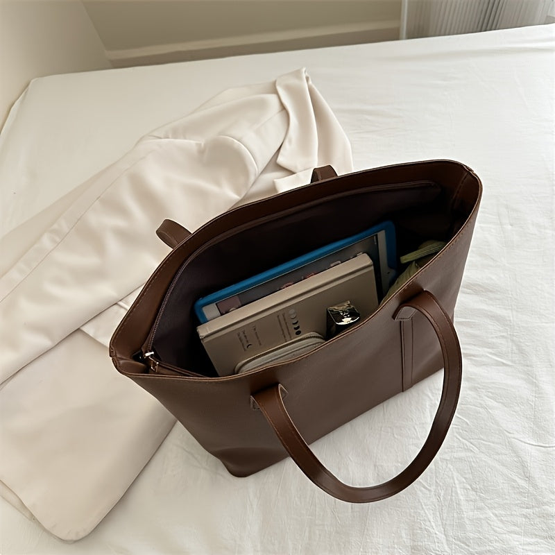Women’s Korean-Style Patchwork Tote Bag PU Leather Black for 2024