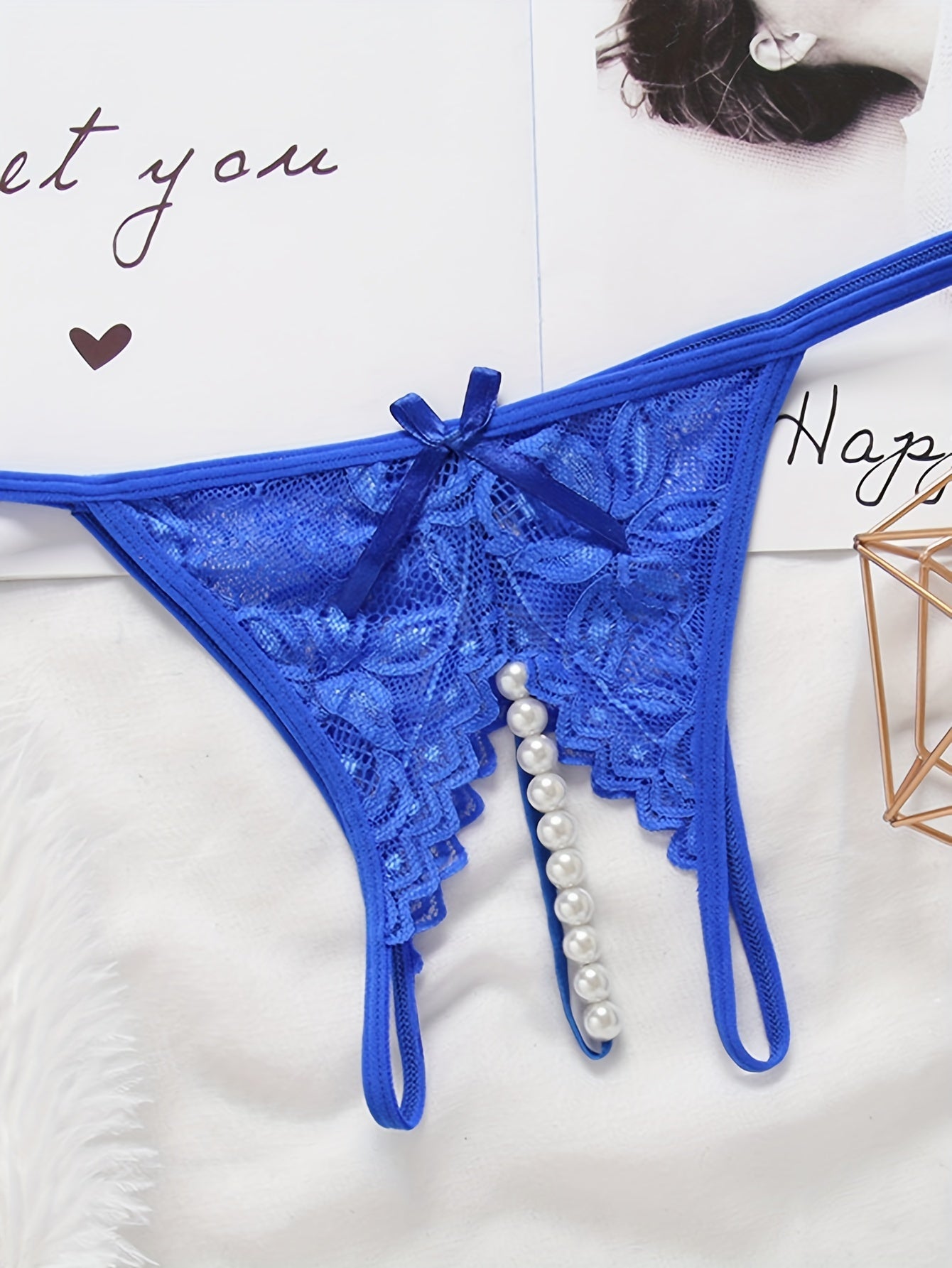 Lace G-String Thongs for Women Open Crotch Semi-Sheer Knit Fabric Adult Lingerie