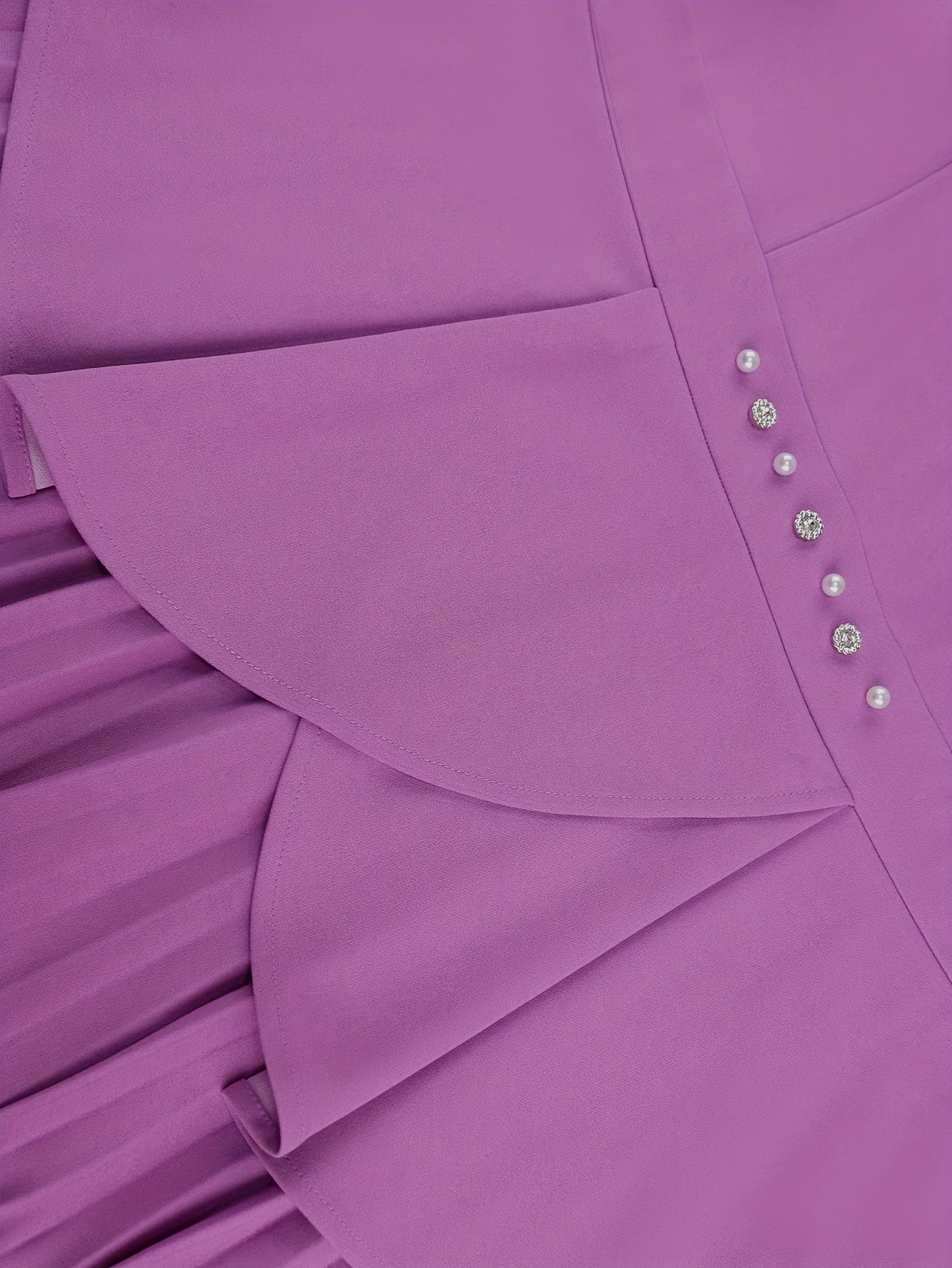 Ladies Purple Three-Quarter Sleeve Evening Gown Beaded Rhinestones Weddings