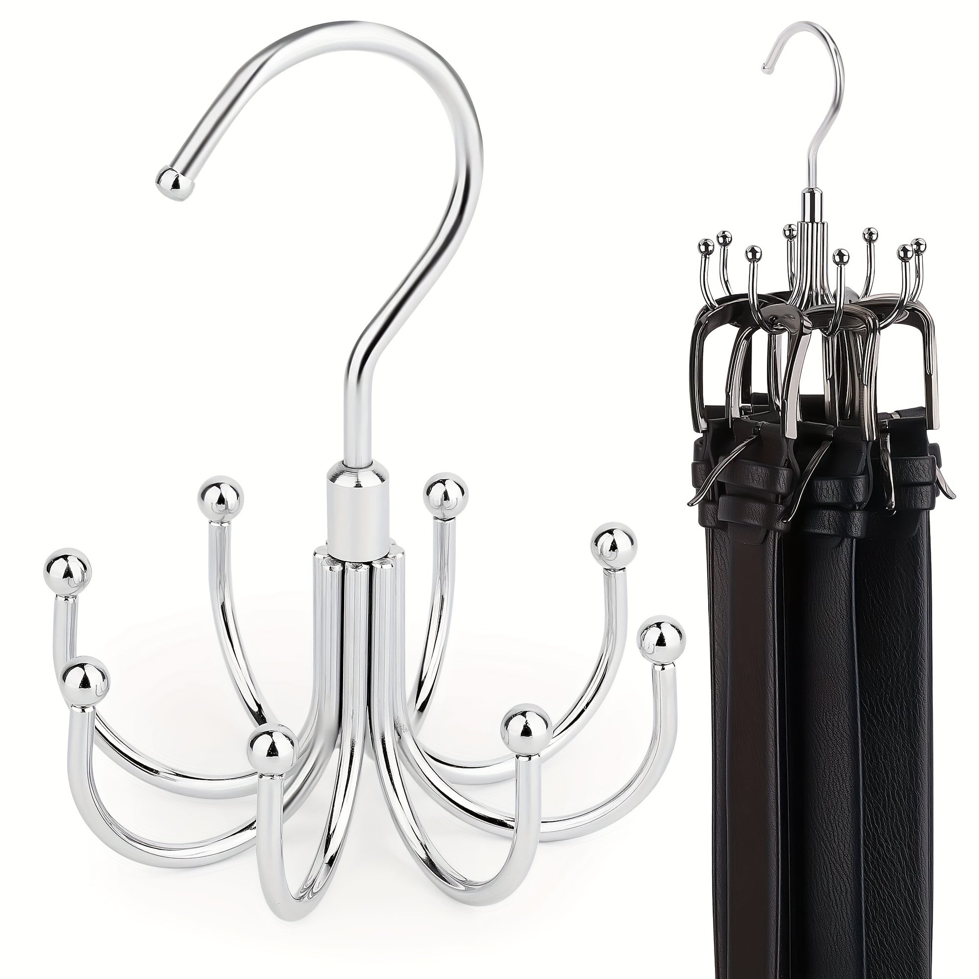 Large Capacity Stainless Steel Belt Storage Hanger with Rotating Hooks for Ties Bras Socks Underwear and Vests