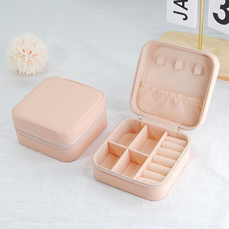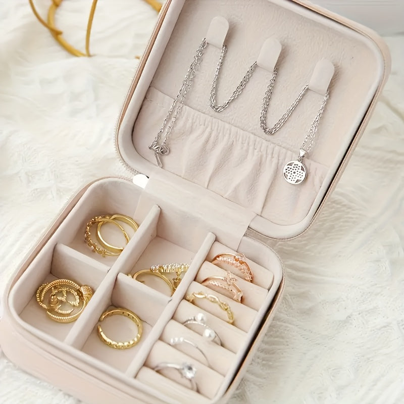 Leather Jewelry Organizer with Zipper Closure and Fabric-Lined Compartments