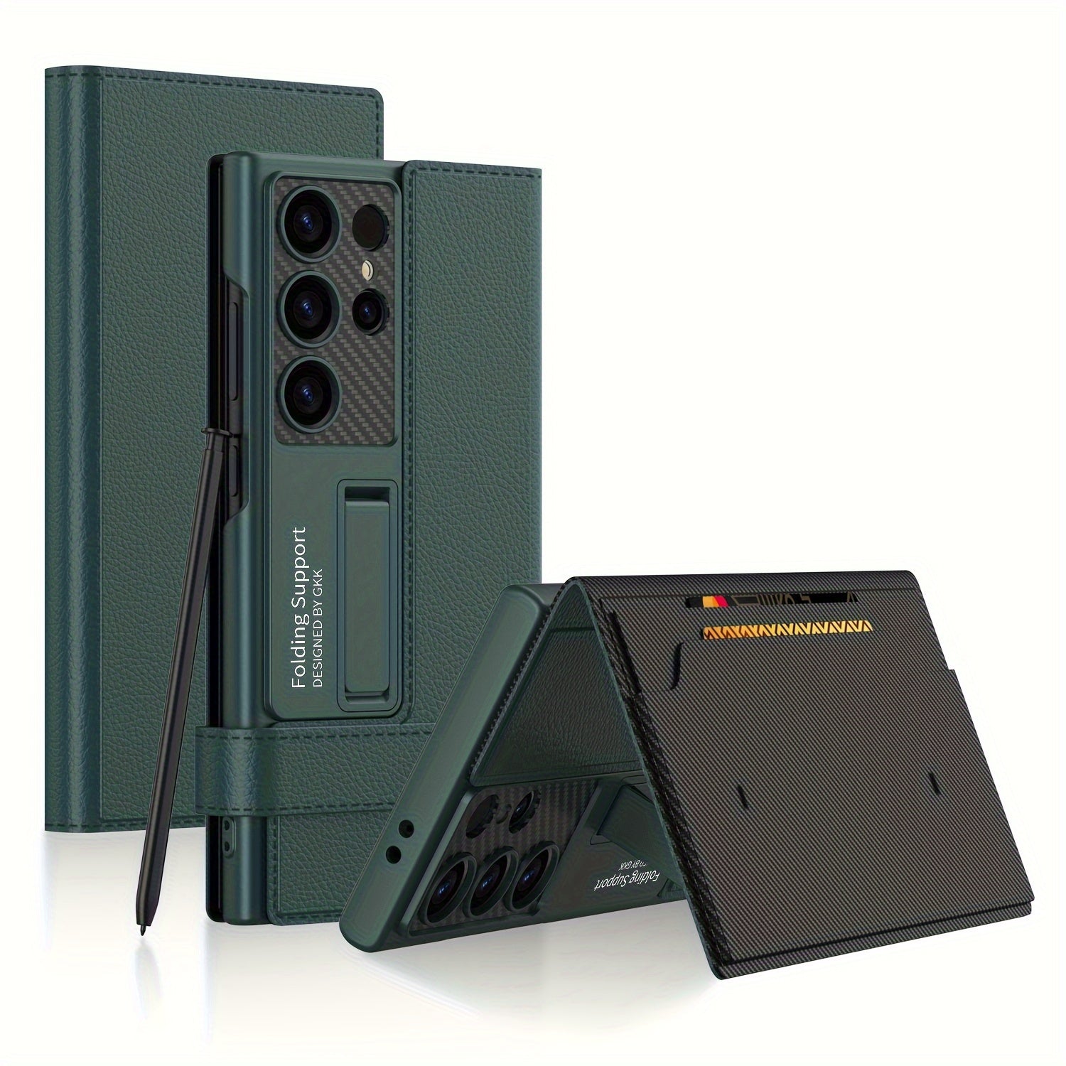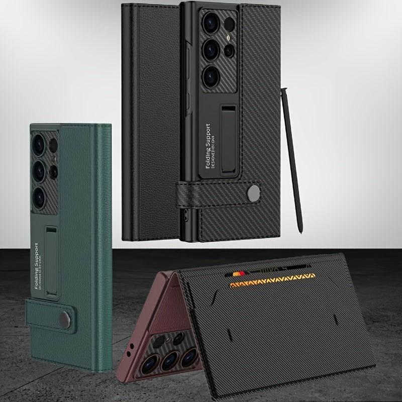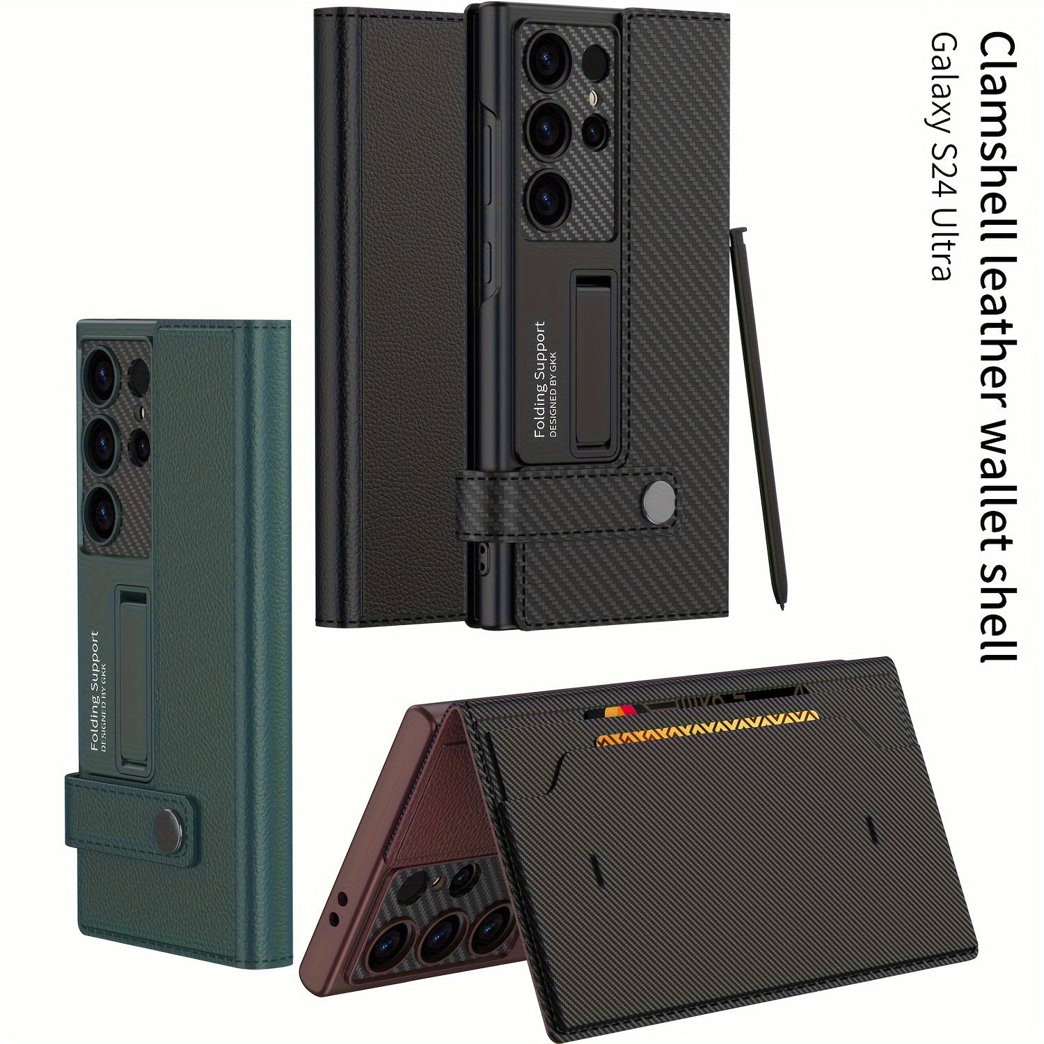 Leatherette Phone Case with Carbon Fiber Pattern for Samsung S24 Ultra Plus Card Storage Anti-Fall Protection