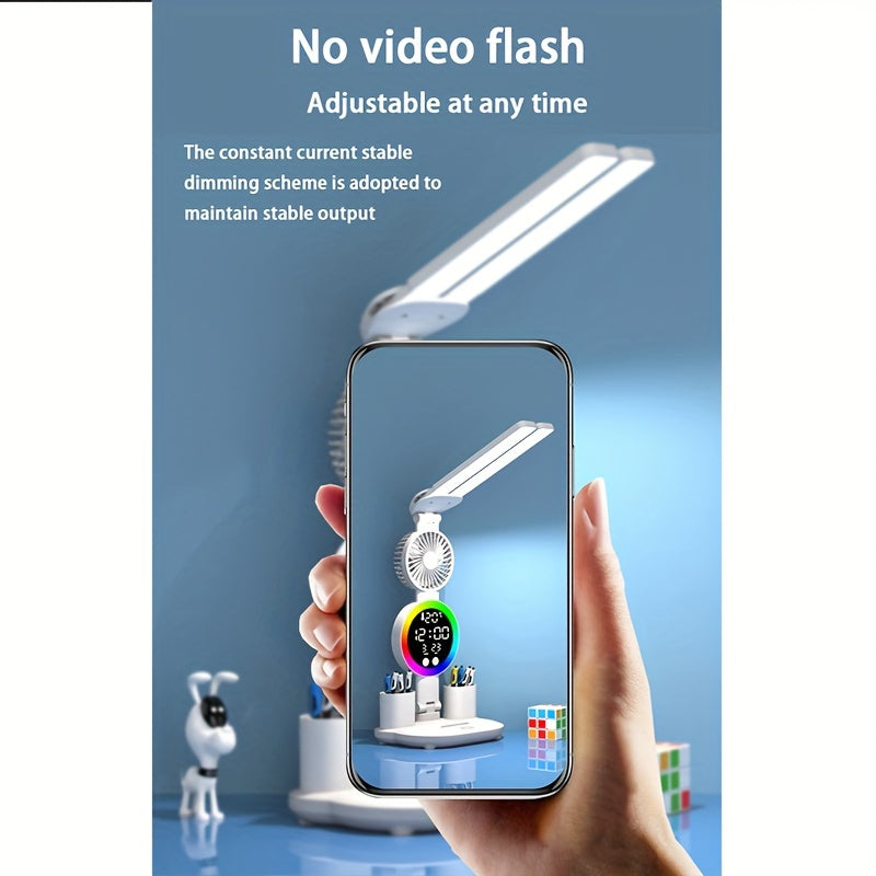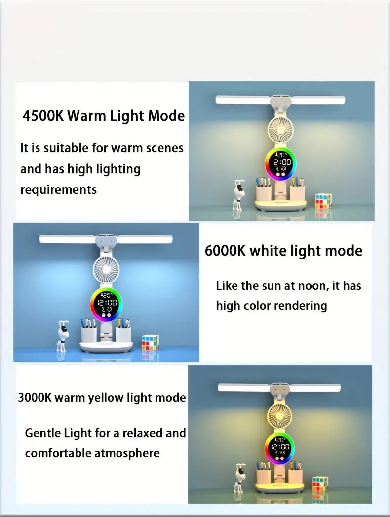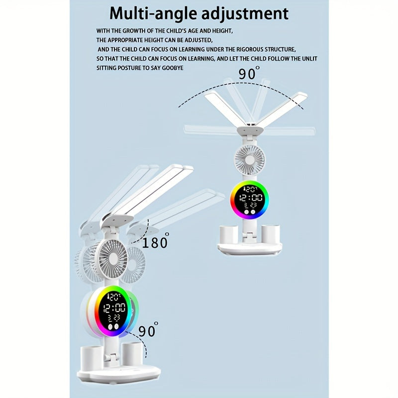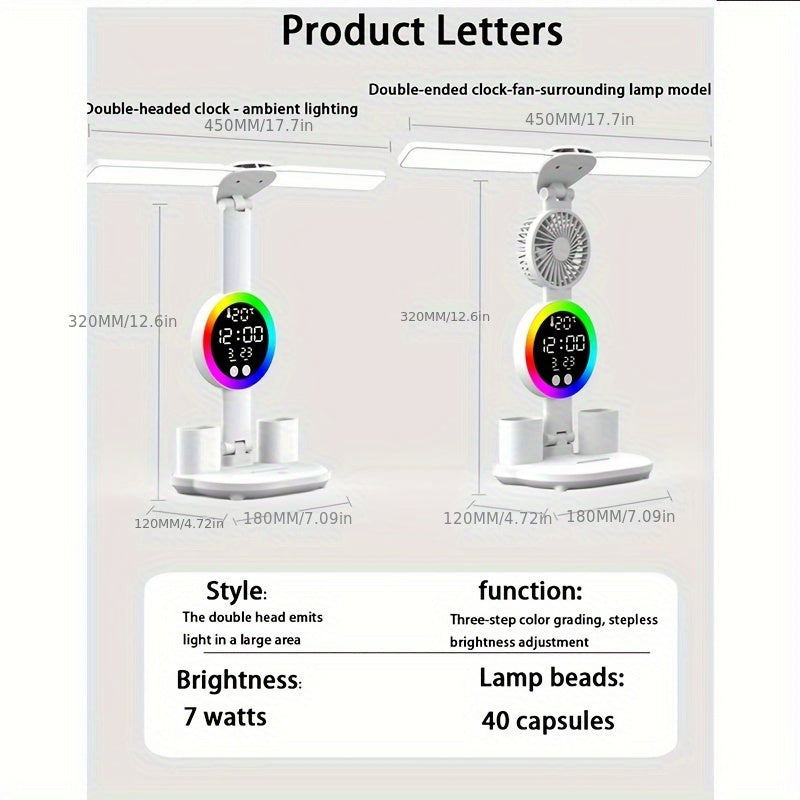LED Dual Head Desk Lamp with Radio and USB Plug-in for Study Dorm Bedroom White