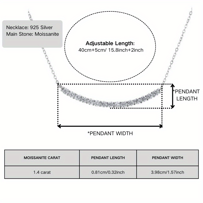 Moissanite S925 Silver Necklace 1.4 Carat Adjustable Gift Box Ethically Sourced