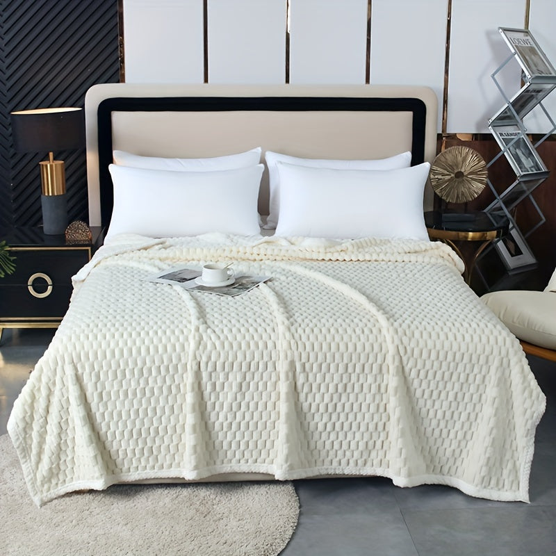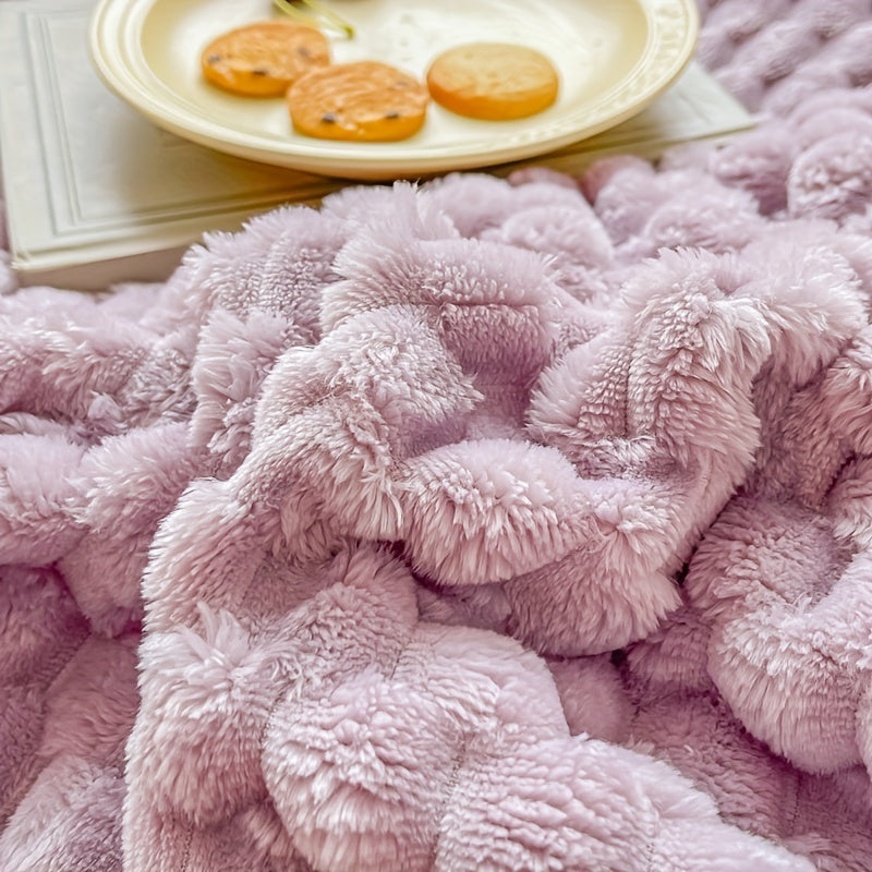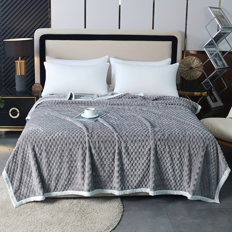 Flannel Throw Blanket with Jacquard Pattern Microfiber Cozy Sofa Bed Lavender Purple