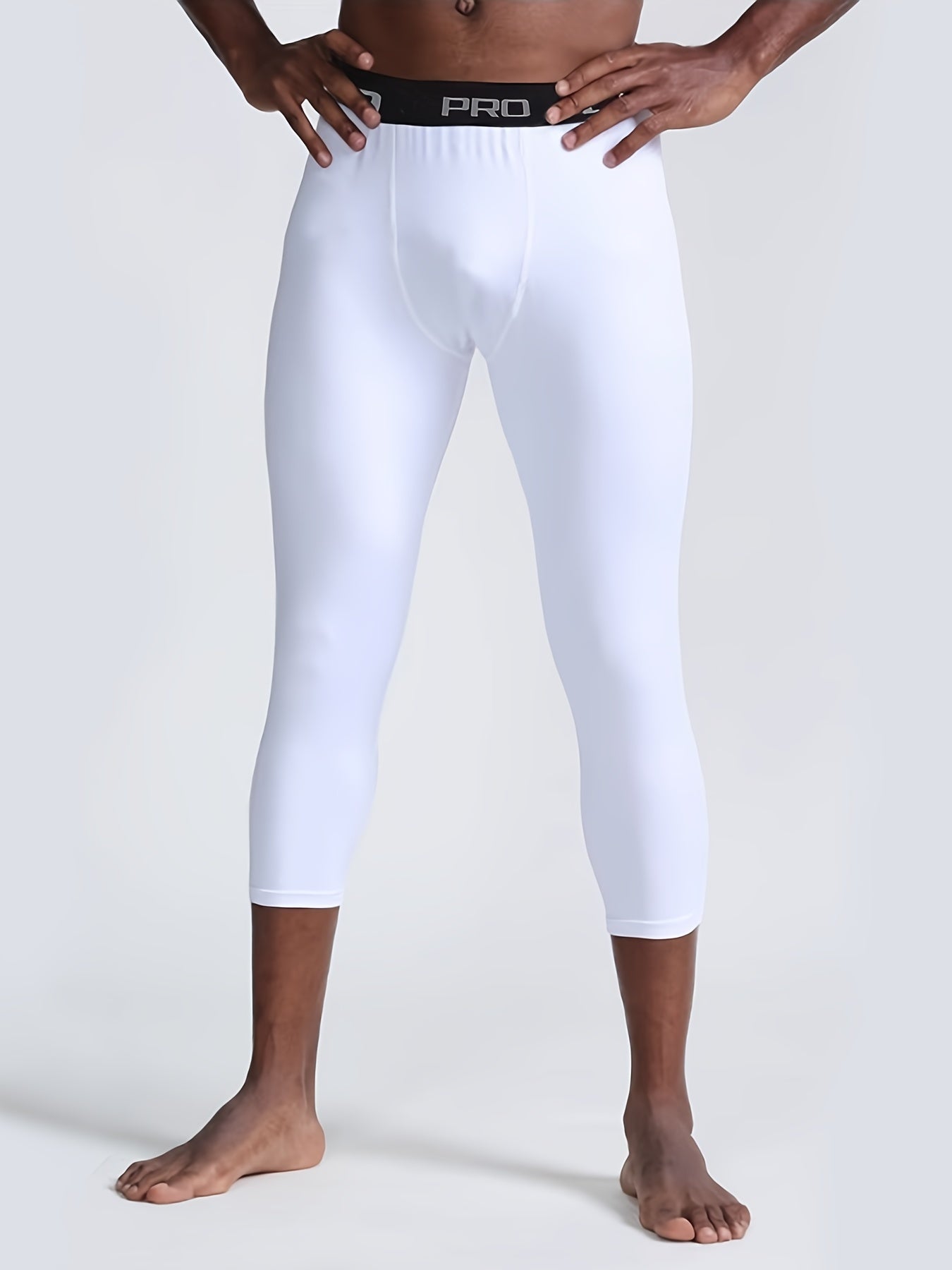 Men's Black Cropped Leggings High Elasticity Polyester Spandex Athletic Fit for Gym or Casual