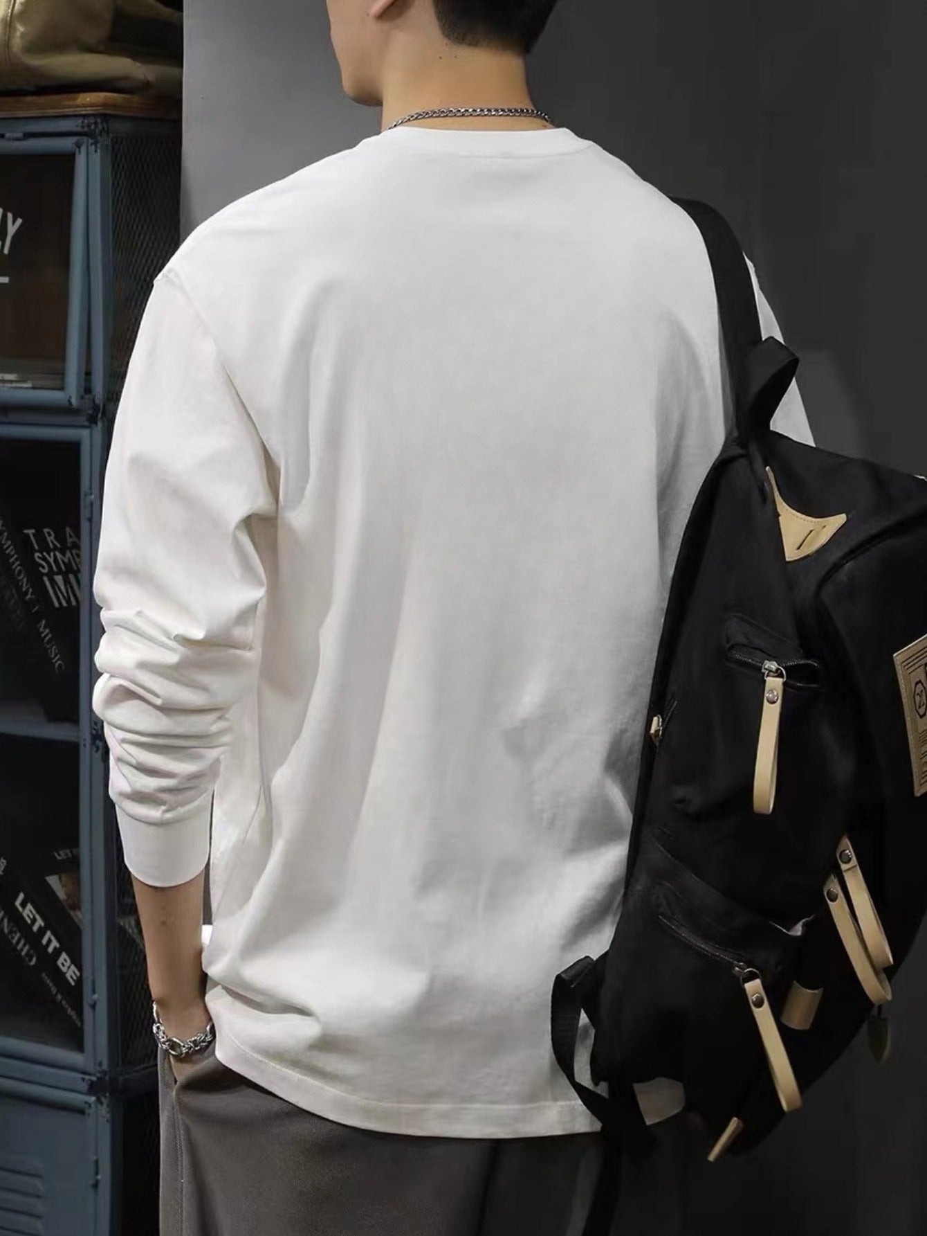 Men's Long Sleeve Cotton T-Shirt with Alphabet Pattern Crew Neck Casual Spring Fall