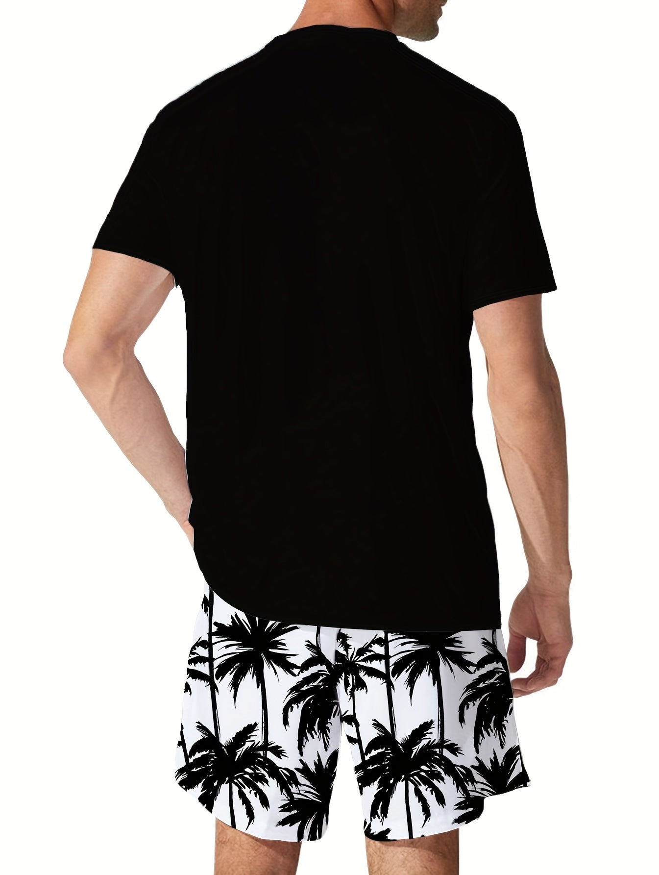 Men's Casual Outfit Set Polyester Cartoon Print Crew Neck T-Shirt and Shorts