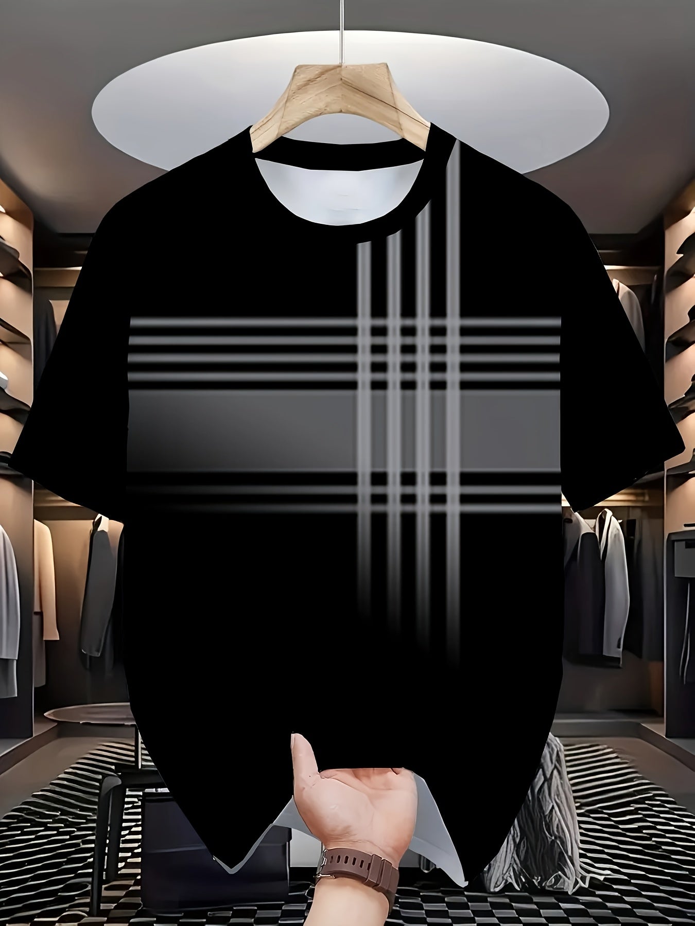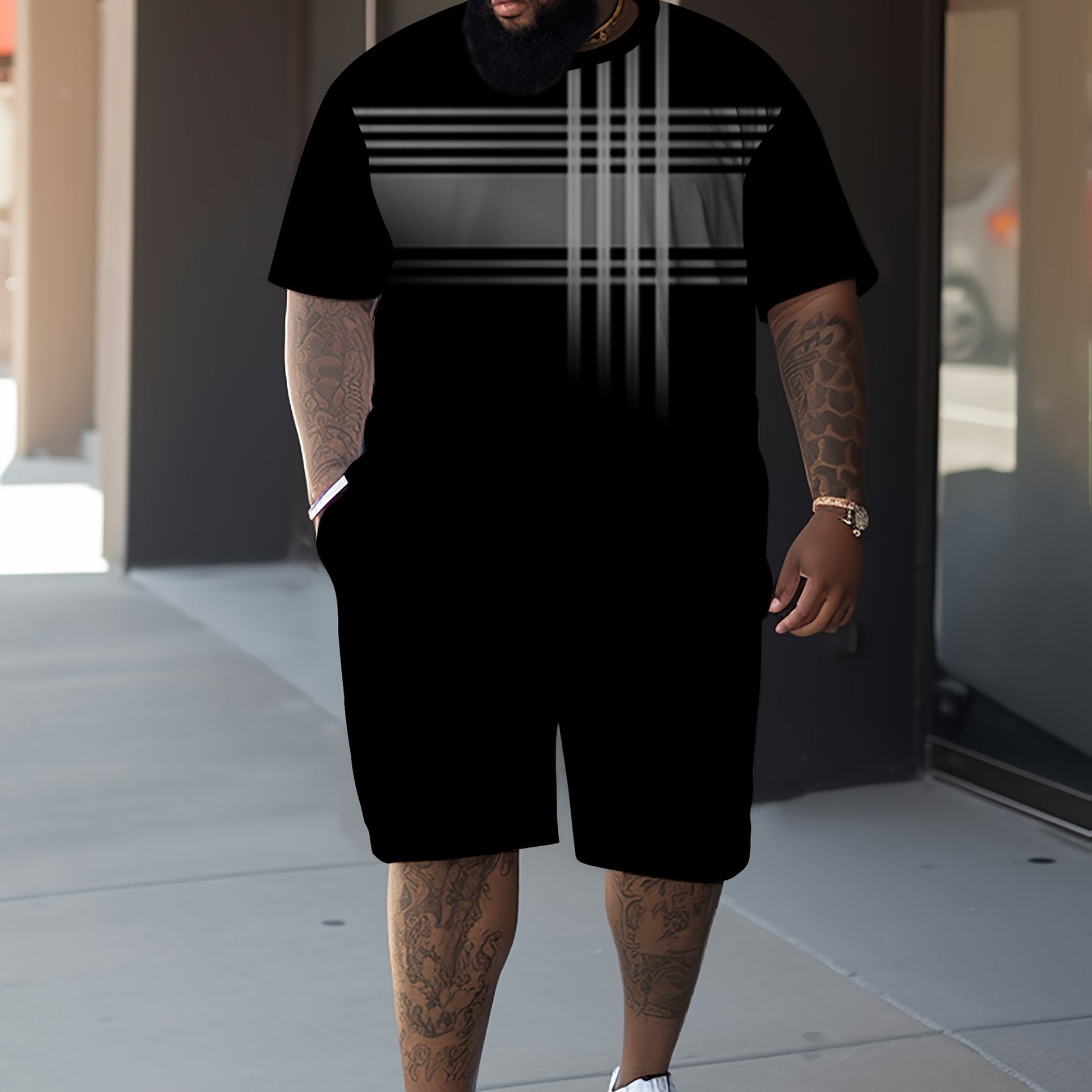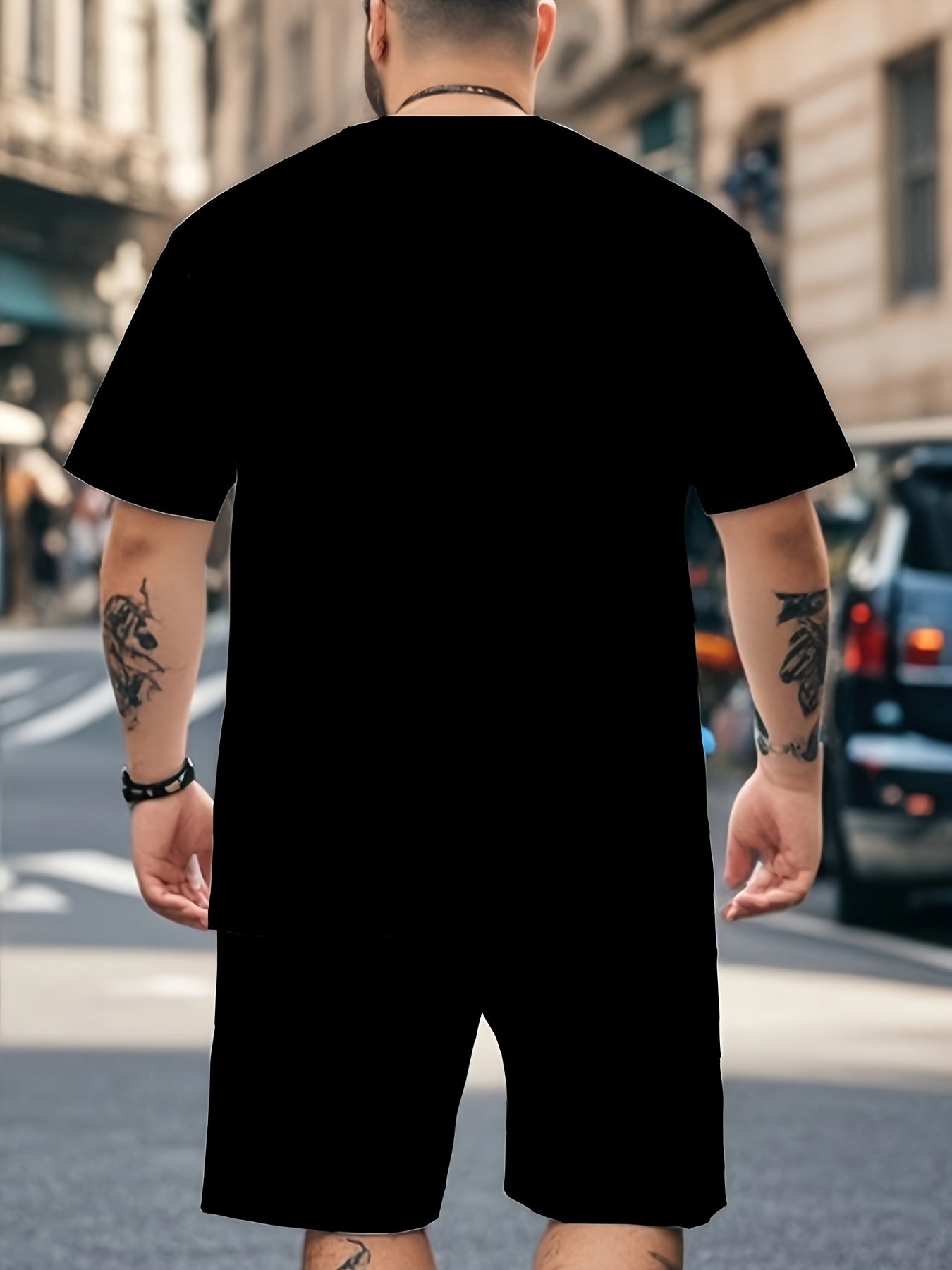 Men's Casual Short Sleeve Plaid and Printed Set Polyester Knit Fabric