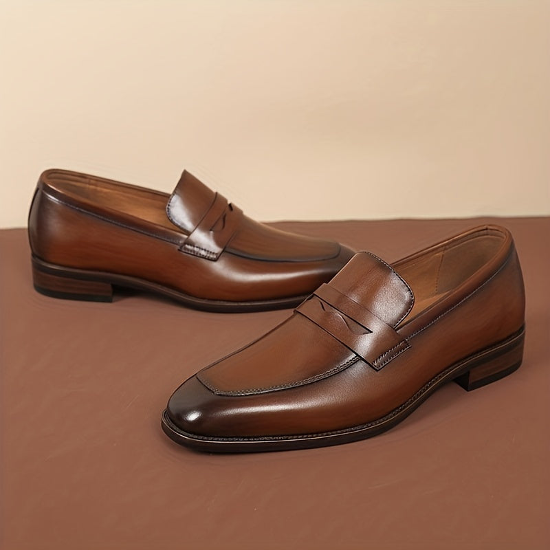 Men's Cow Leather Slip-On Loafers with Rubber Sole and Round Toe for All Seasons