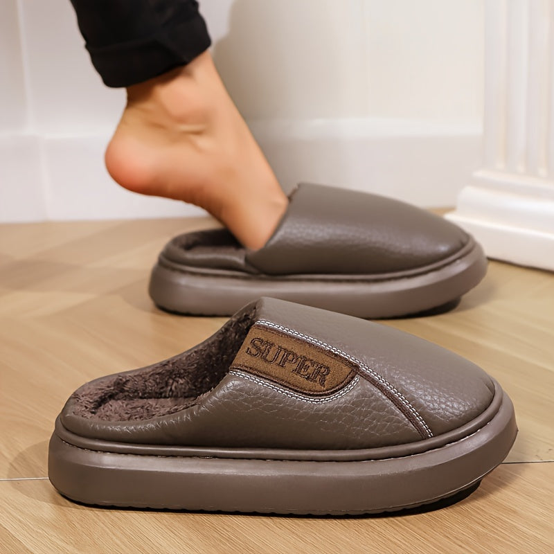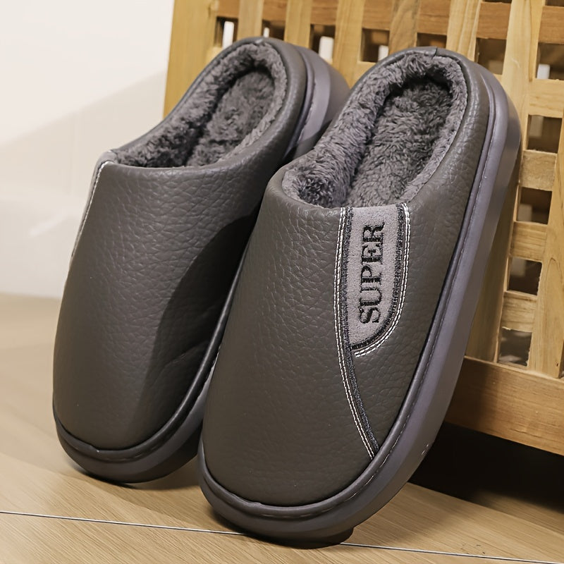 Men's Extra Large Winter Indoor Slippers with Fleece Lining Non-Slip TPR Sole Striped Pattern
