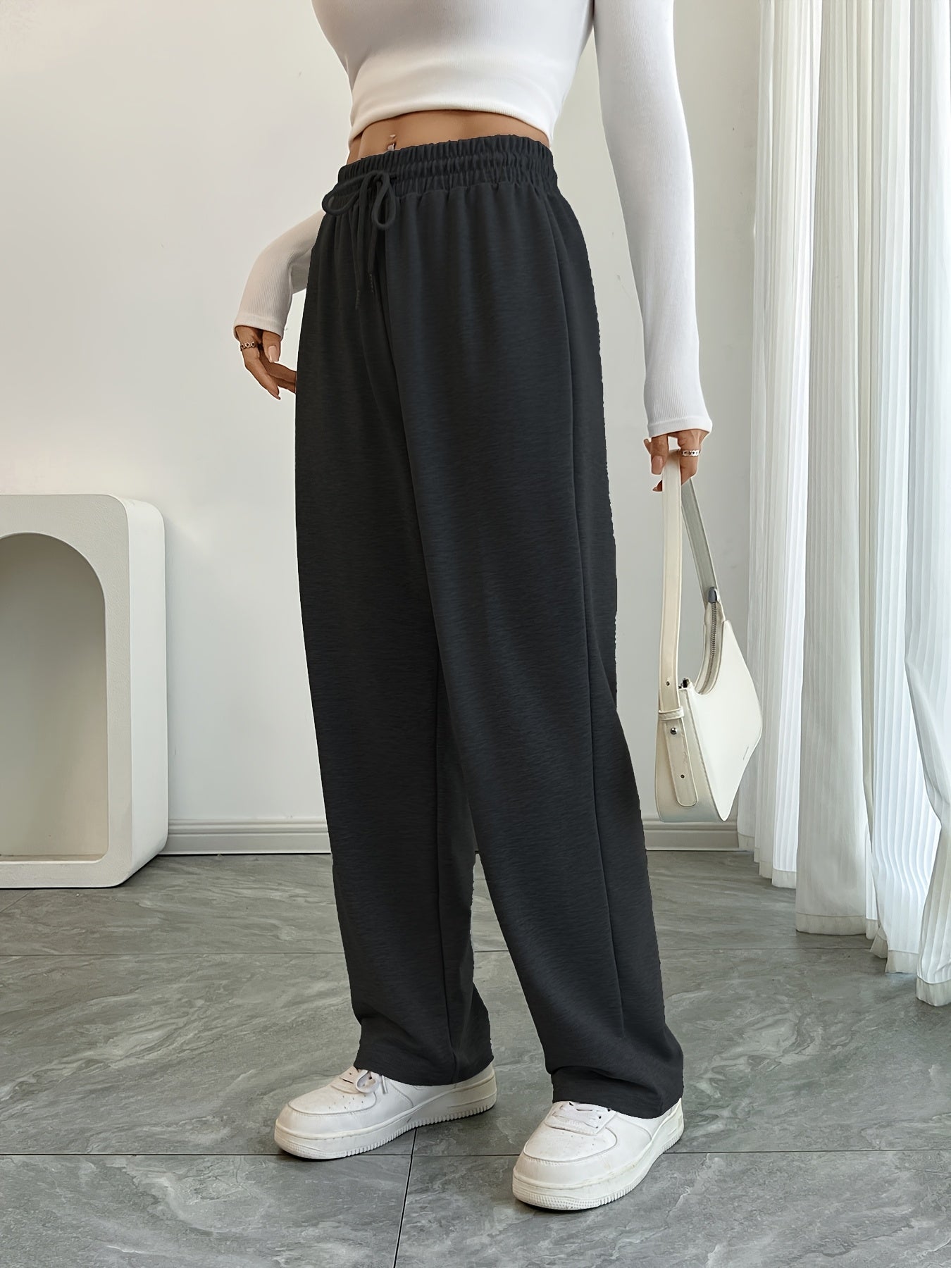 Men's Grey Polyester Joggers with Elastic Waistband Drawstring Long Casual Pants for Spring and Autumn