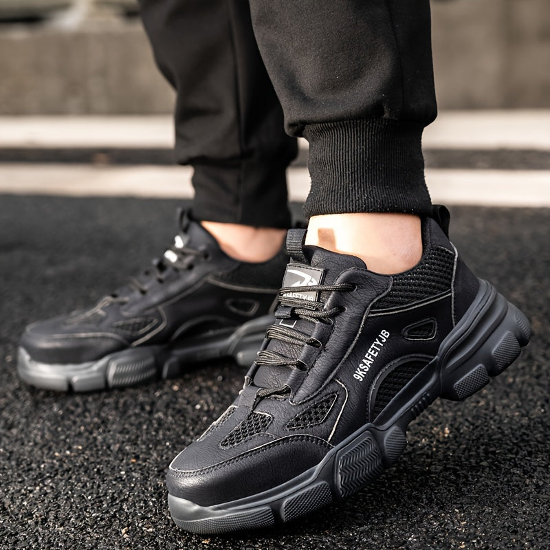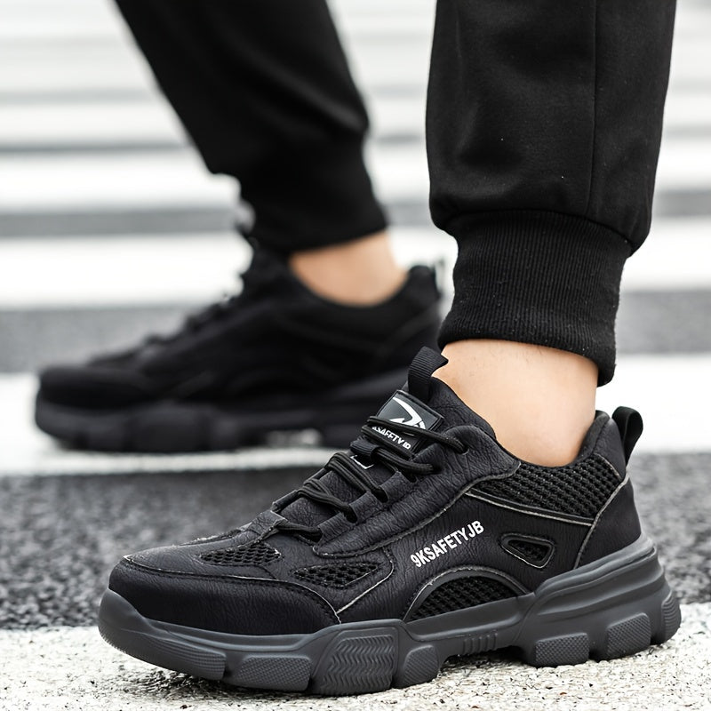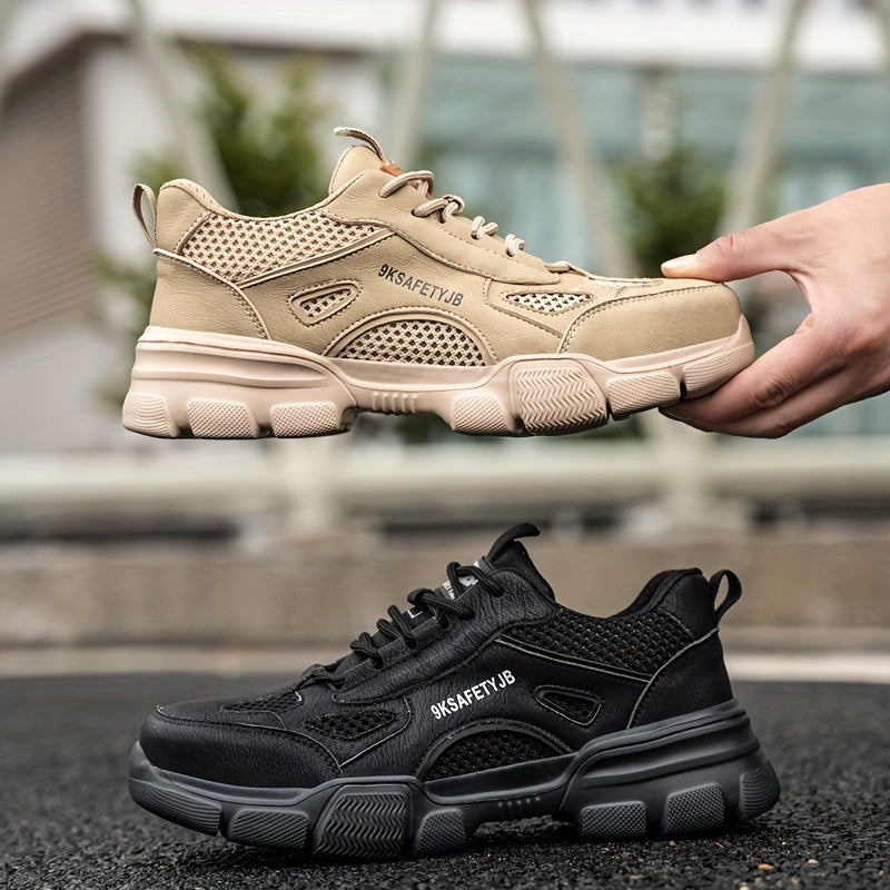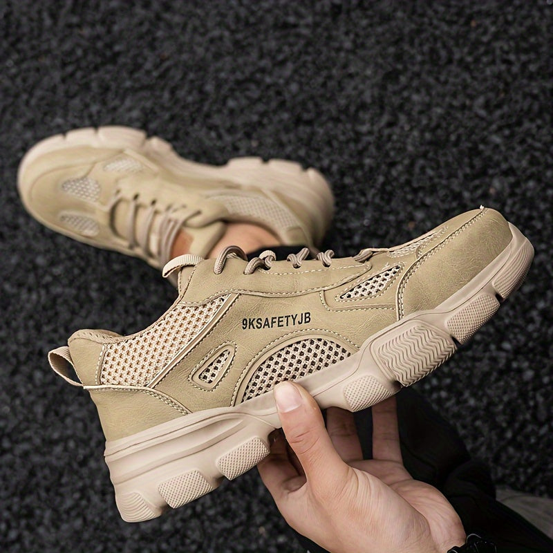 Men's Safety Shoes Lightweight Steel Toe Non-Slip Puncture-Resistant Rubber Breathable Mesh Beige