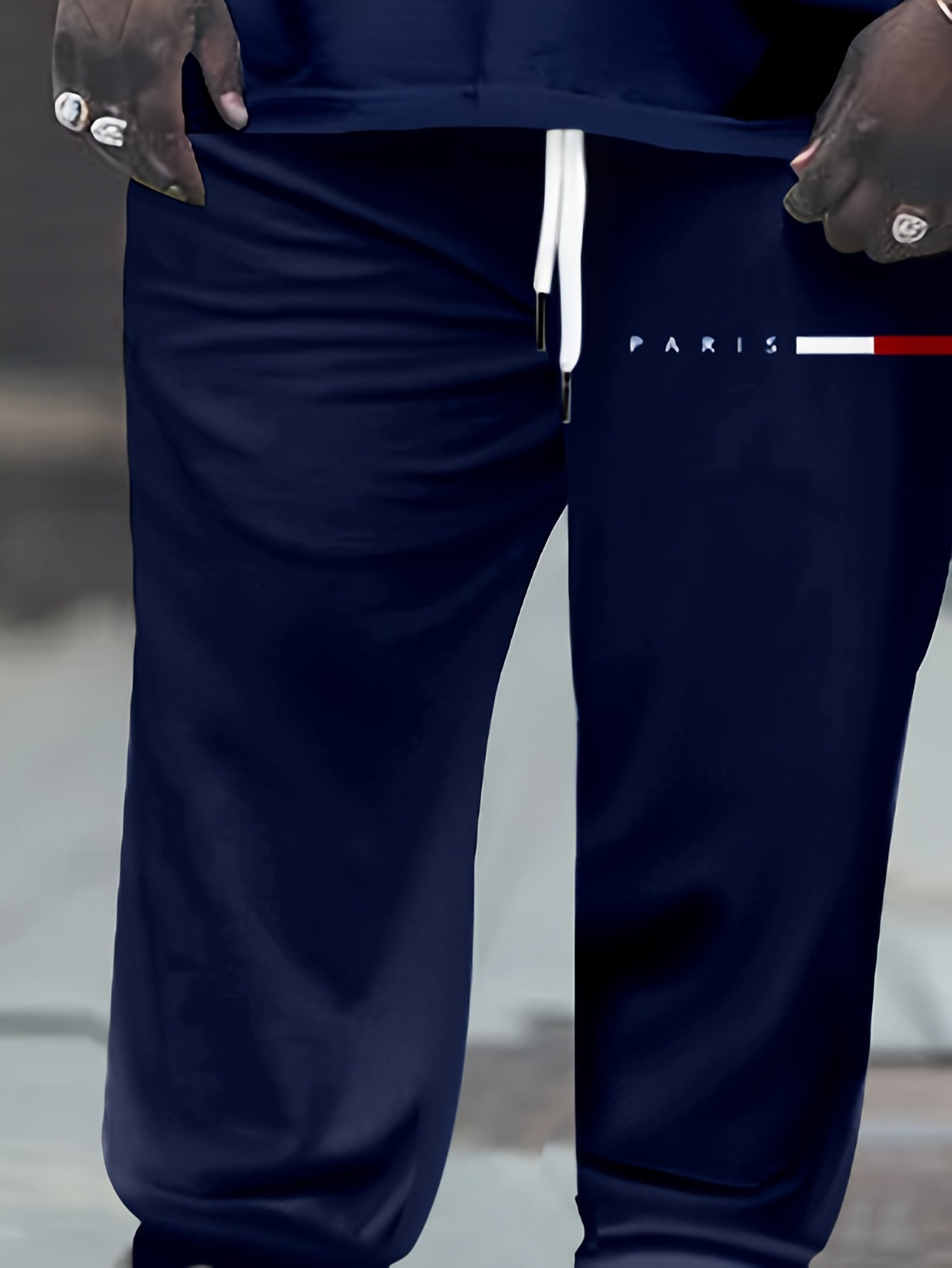 Men's Navy Blue Casual Sports Outfit Plus Size Polyester Knit with Pockets