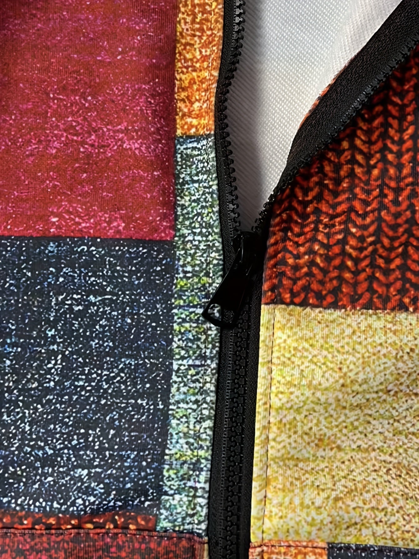 Men's Plus Size Hooded Zip-Up Jacket with Knit Polyester and Random Print