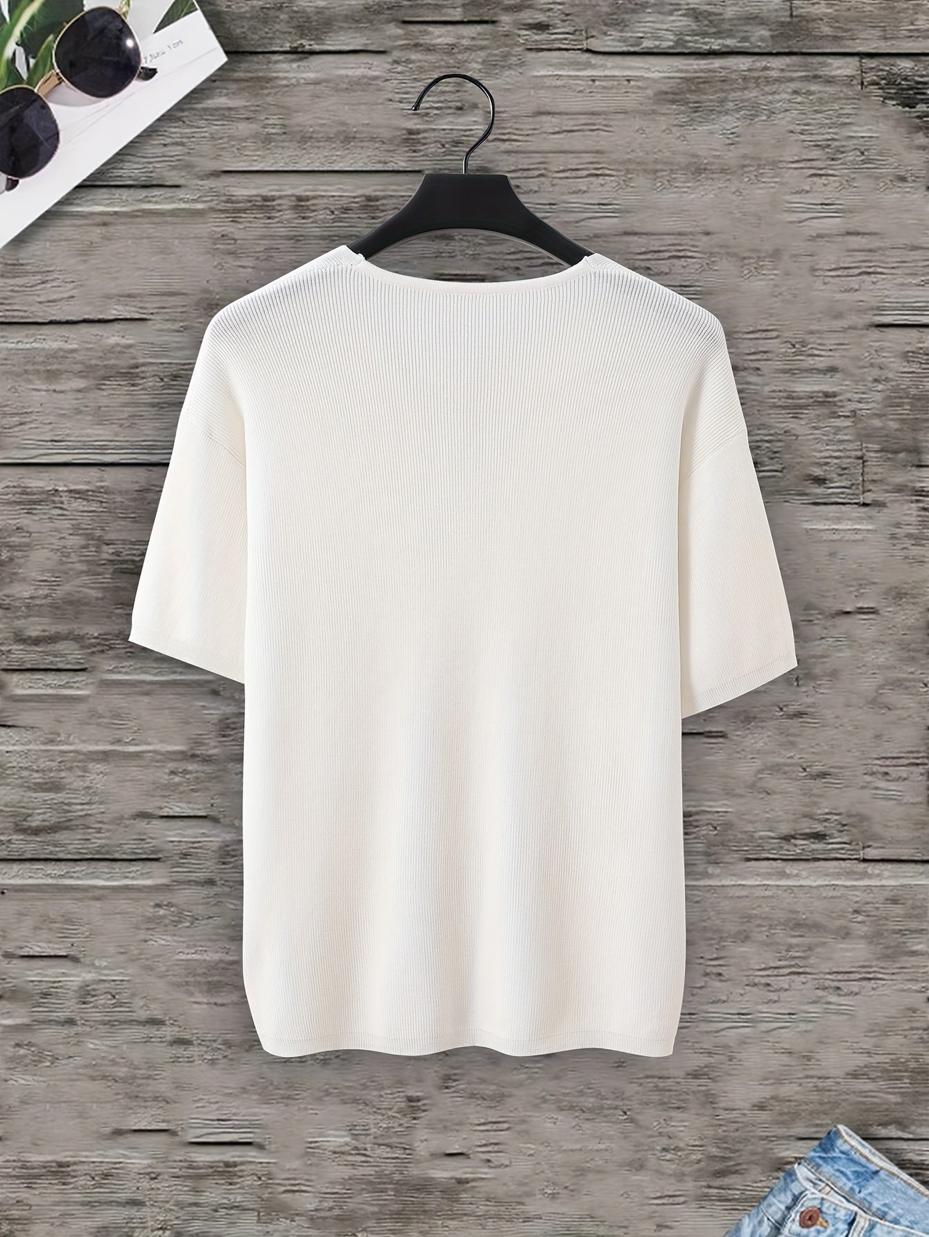 Men's Plus-Size Casual V-Neck Knit Sweater Summer Loose Fit Solid Color
