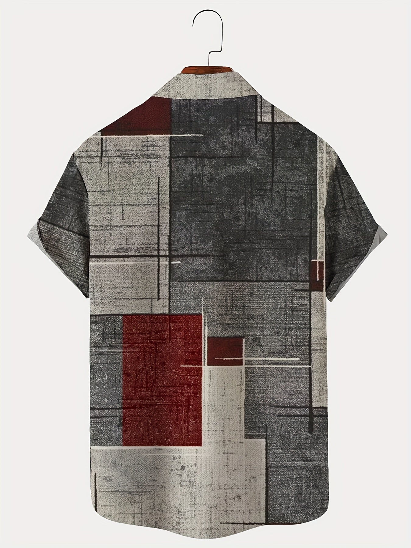 Men's Plus Size Hawaiian Shirt Short Sleeve Geometric Pattern Chest Pocket Summer Beach Wear