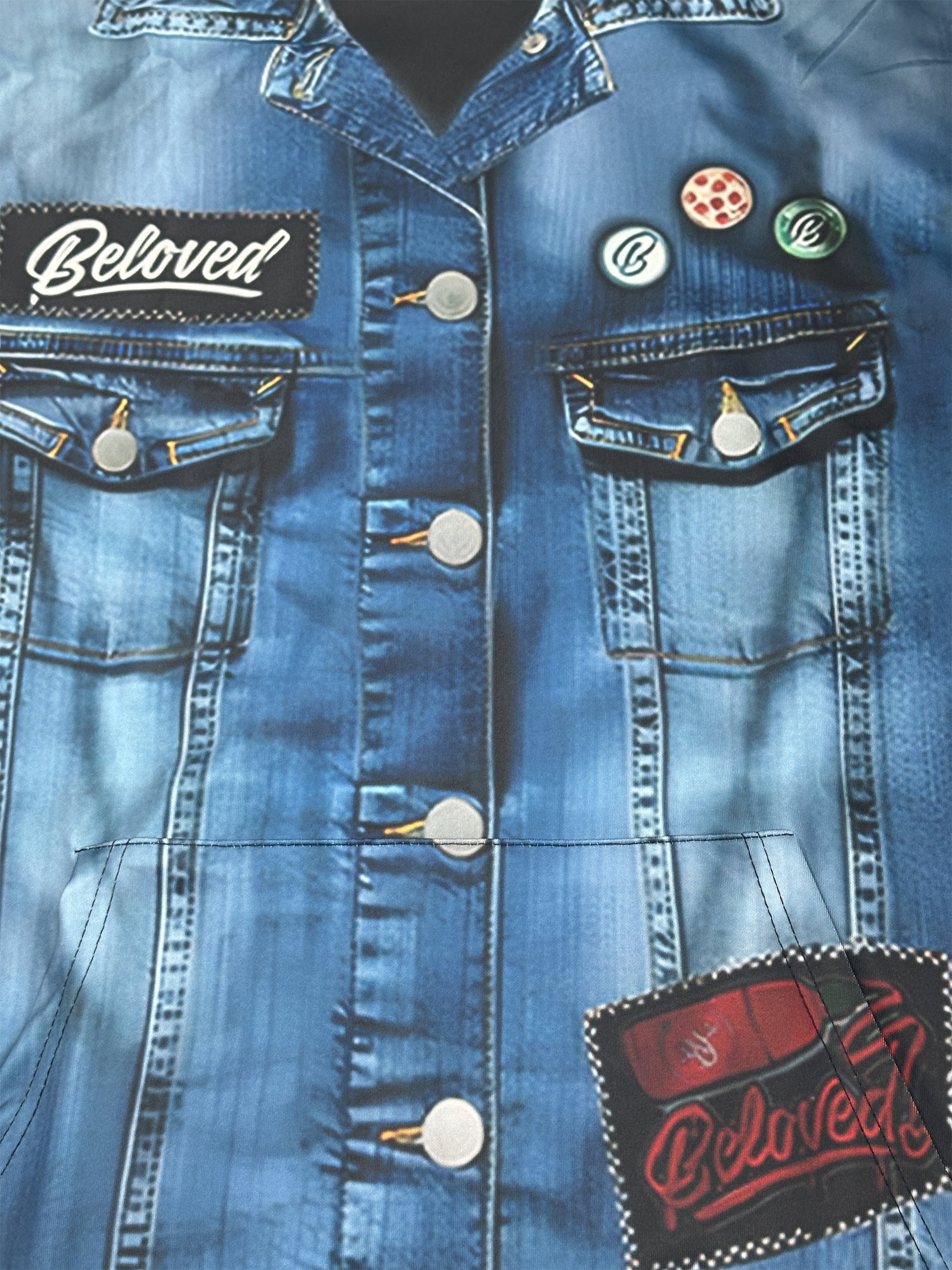 Men's Plus Size Hoodie Polyester Knit Medium Stretch Denim Print Regular Fit Pocket Casual