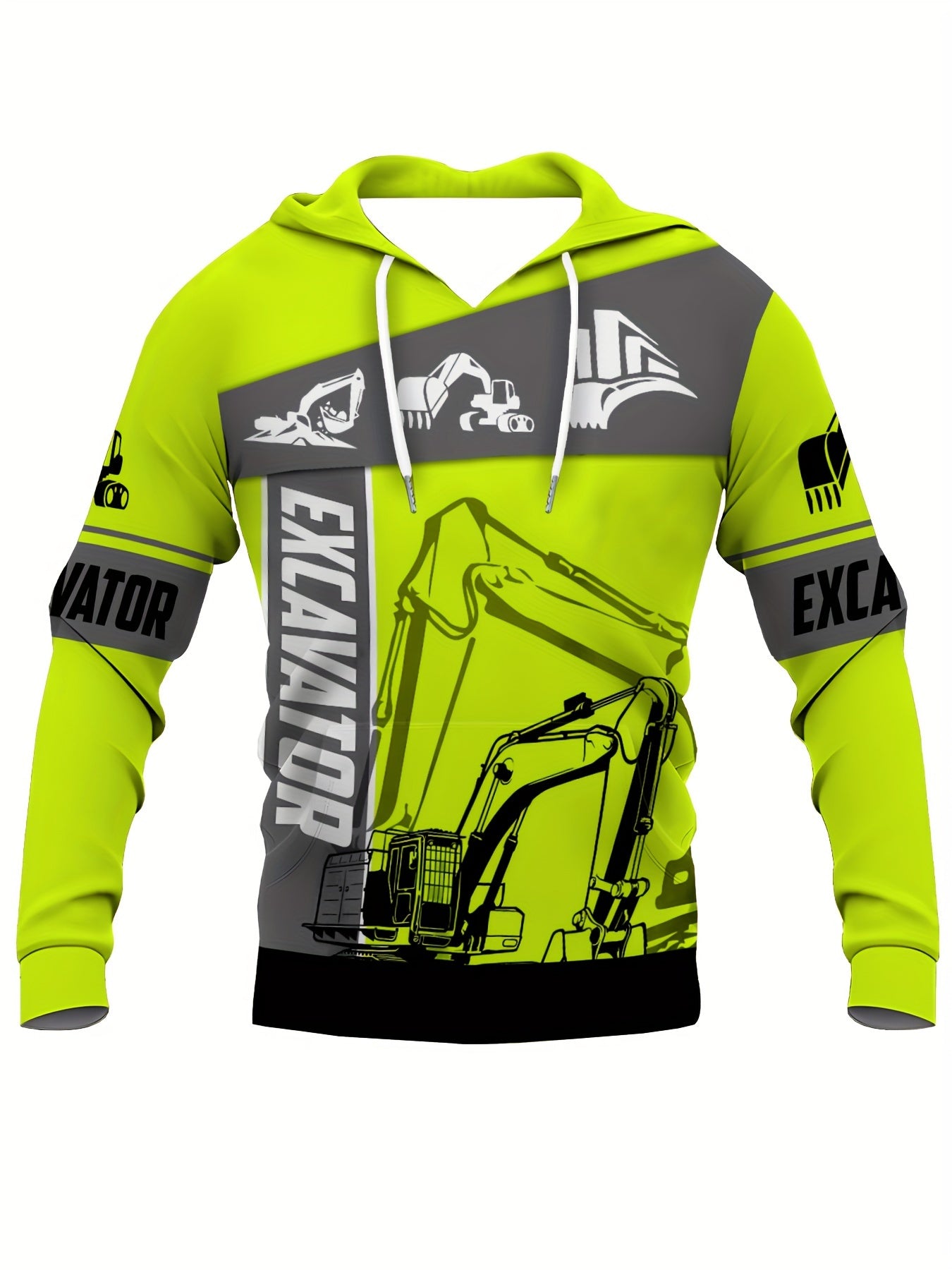 Men's Plus Size Hoodie with Excavator Print Long Sleeve Casual Knit Fall Spring
