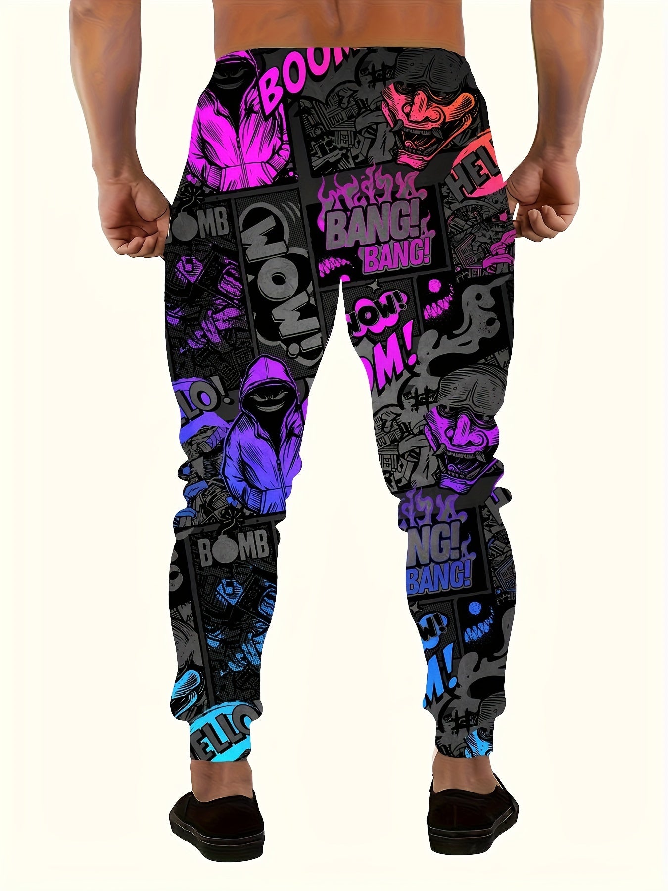 Men's Plus Size Joggers with Graffiti Print Polyester Casual Pants with Pockets