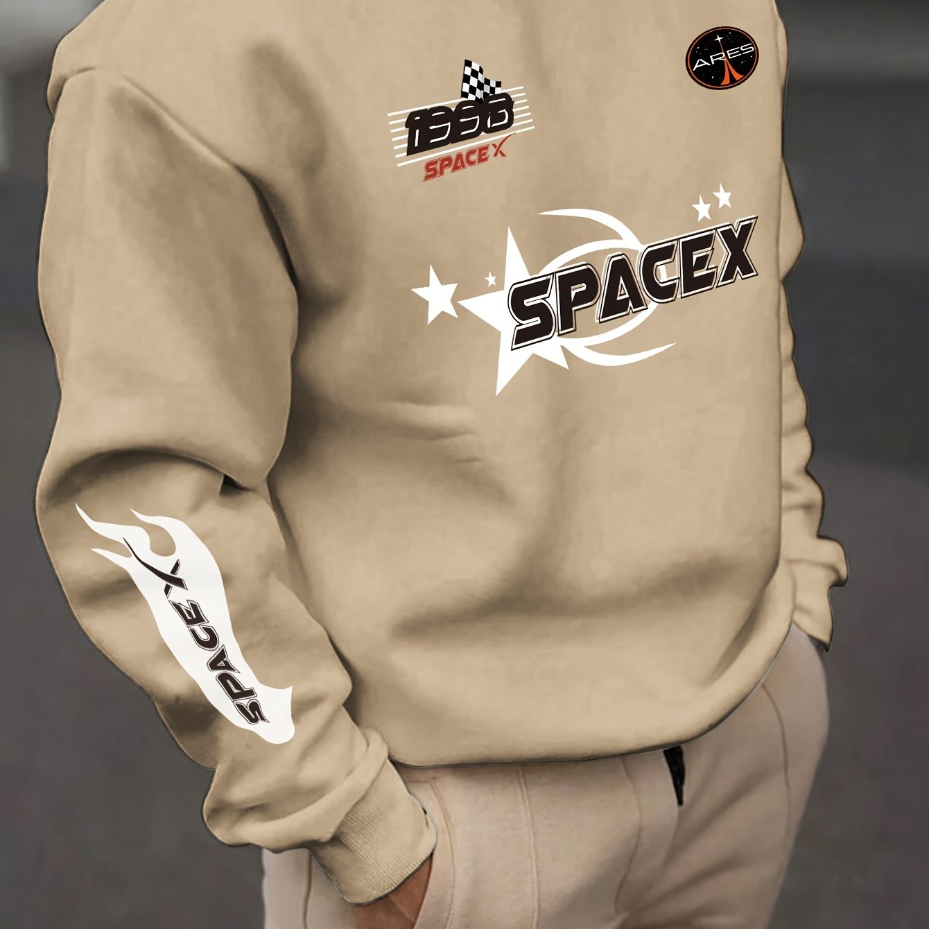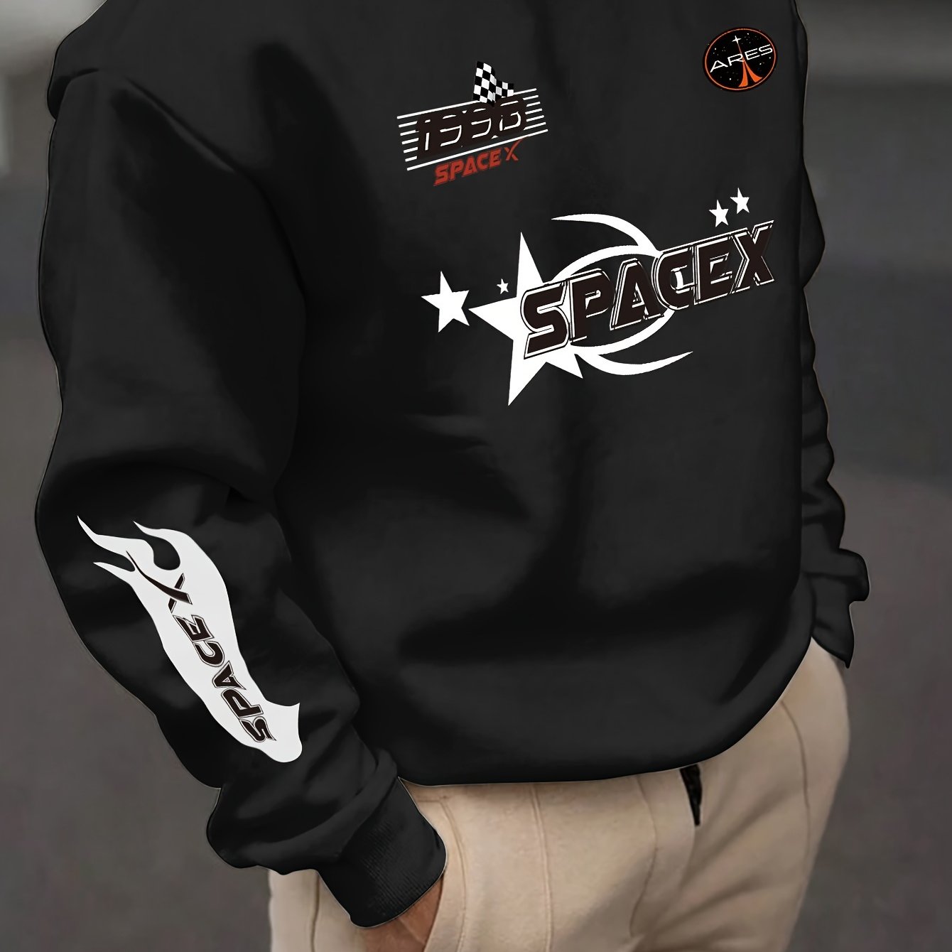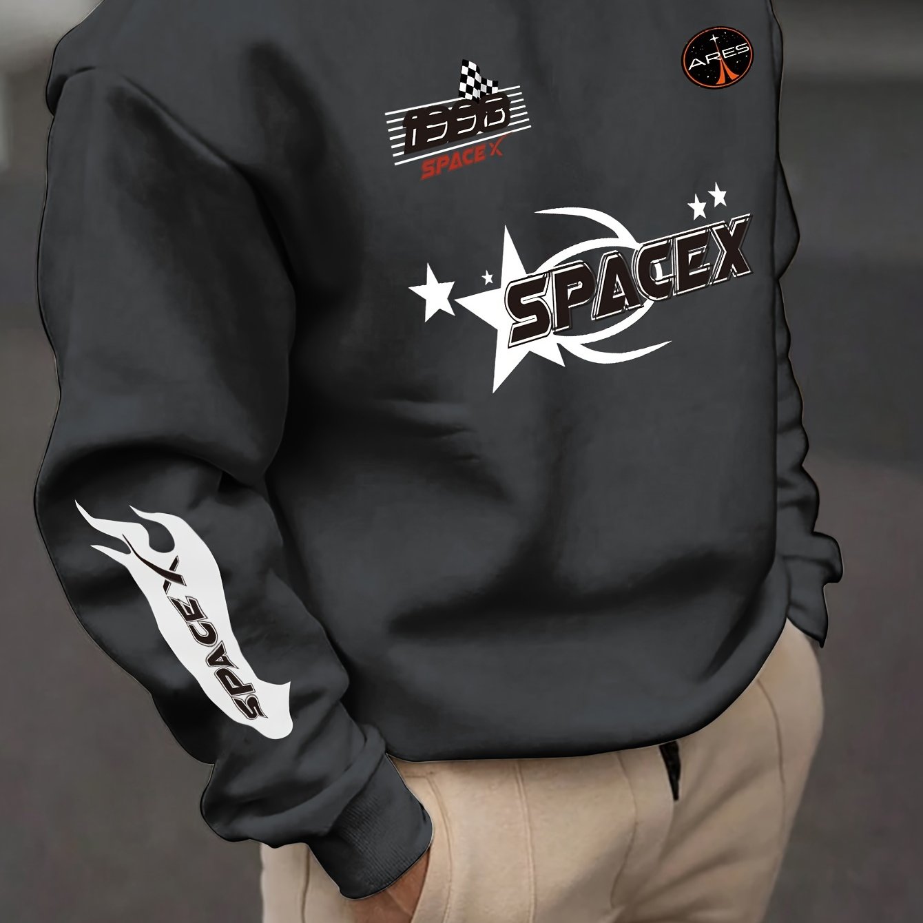 Men's Large Flame Tail Print Sports Hoodie with Long Sleeves and Crew Neck