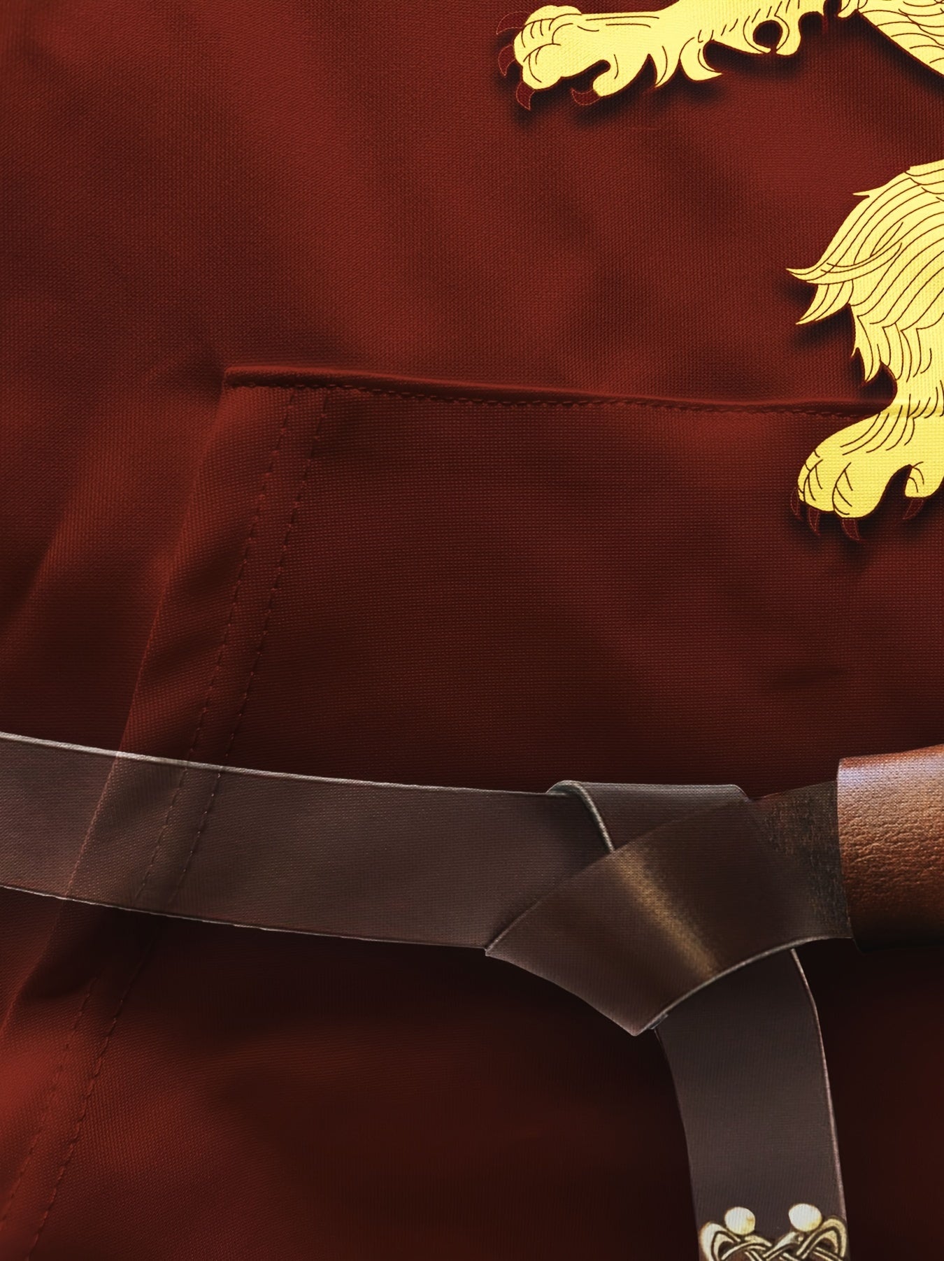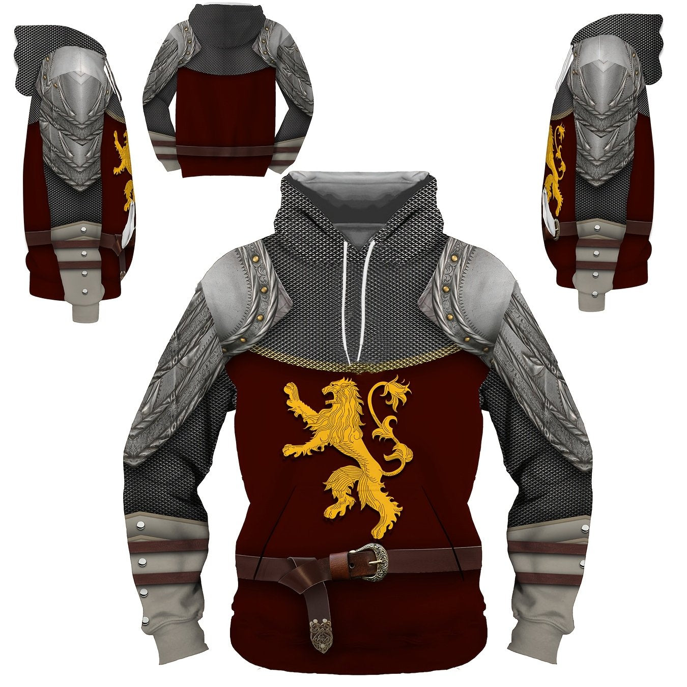 Men's Red Hoodie with Lion Shield Print Polyester Knit Casual Sports Fall Winter