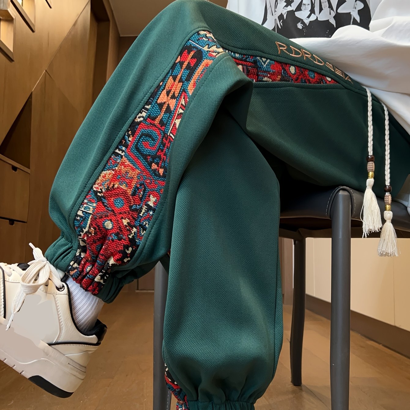 Men's Casual Pants Polyester Tribal Patchwork Letter Embroidery Regular Fit