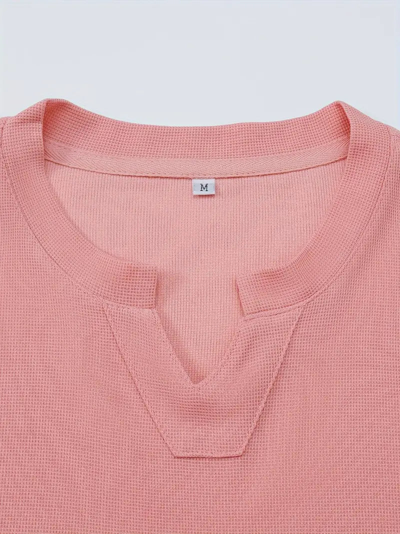 Men's Summer Waffle Knit T-Shirt Crew Neck Short Sleeve Solid Polyester Casual Outdoor