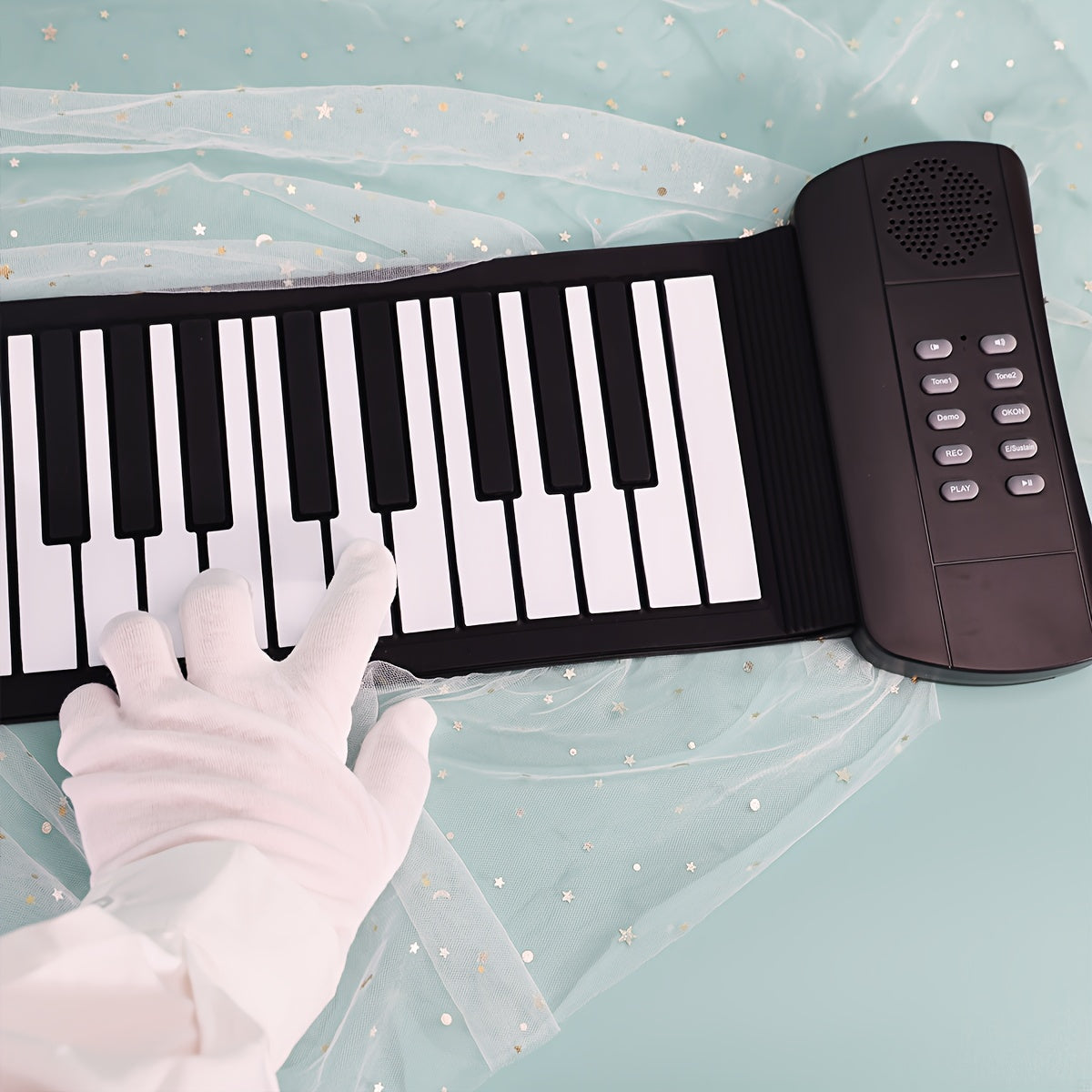 49-Key Portable Roll-Up Silicone Keyboard with USB and Battery Power Black for Beginners
