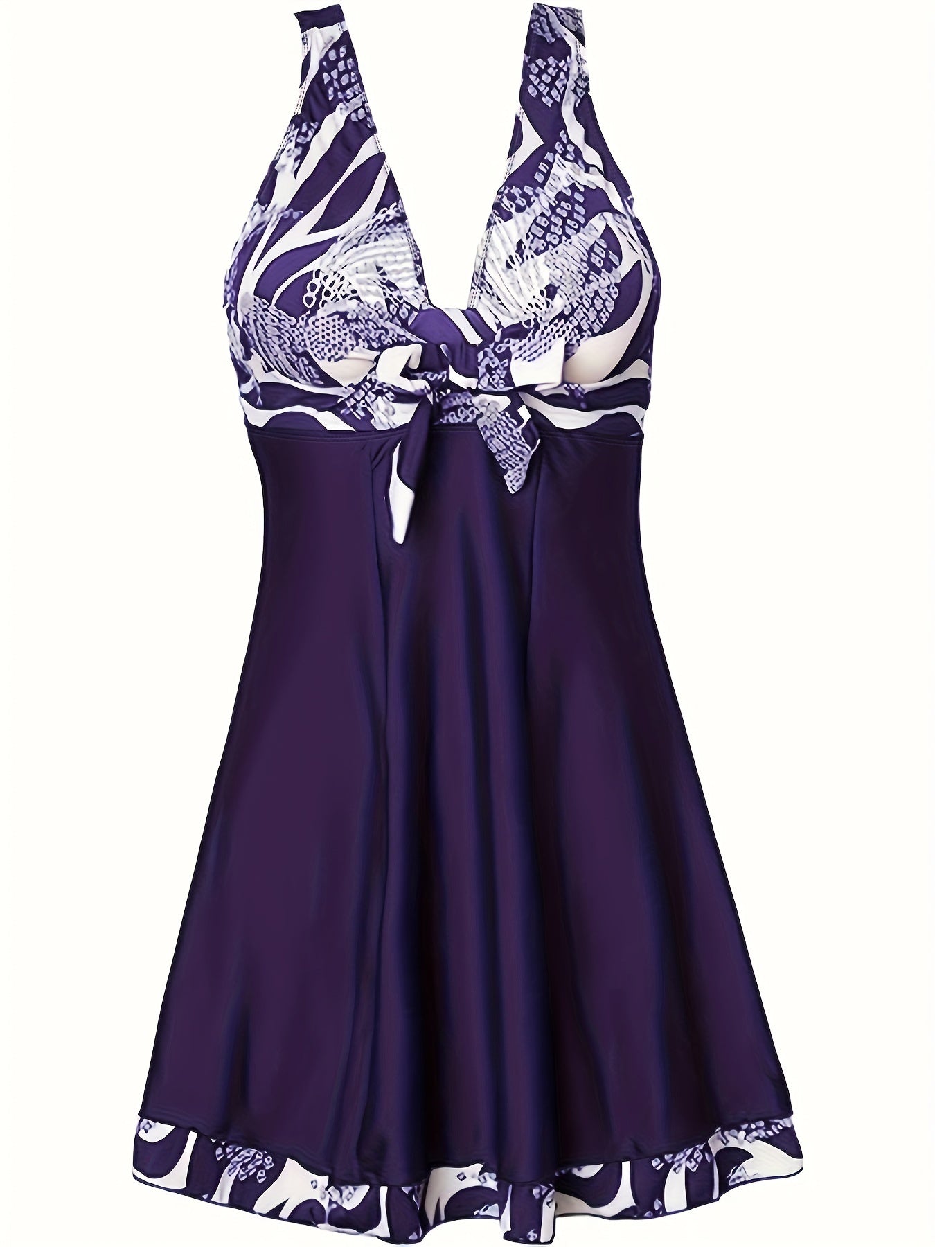 Navy Blue One-Piece Swimsuit with Bowknot Print High Stretch Fabric V-Neck Women’s Swimwear