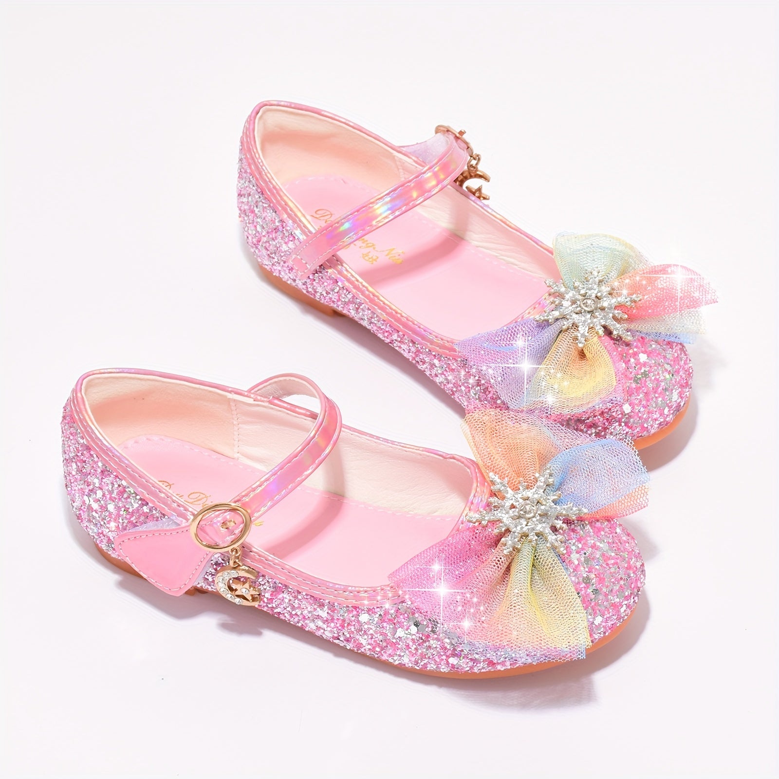 Girls' Blue Crystal Shoes with Non-Slip Soles for Little Princesses