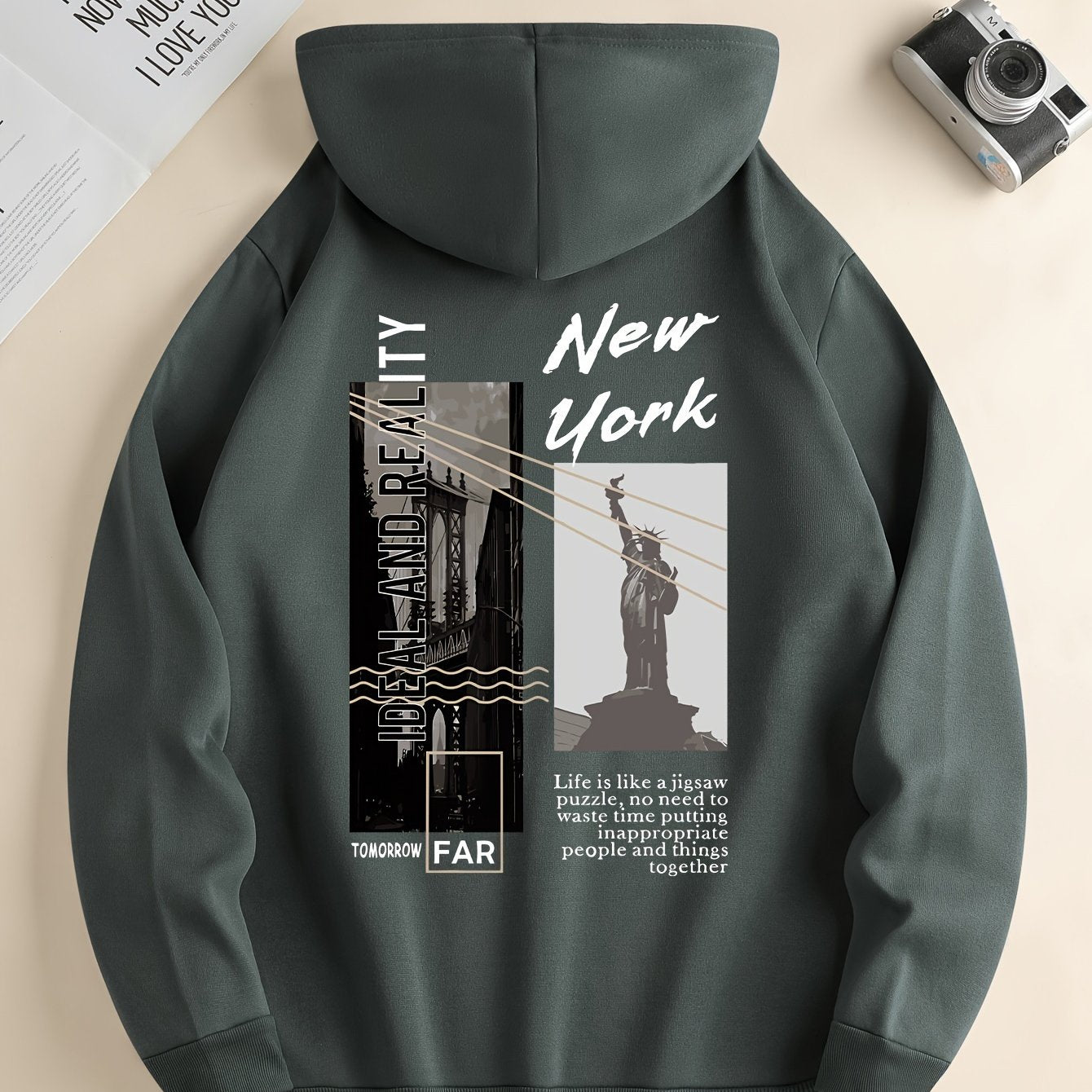 Men's Hoodie with NYC Print Polyester Casual Fall Winter Pullover