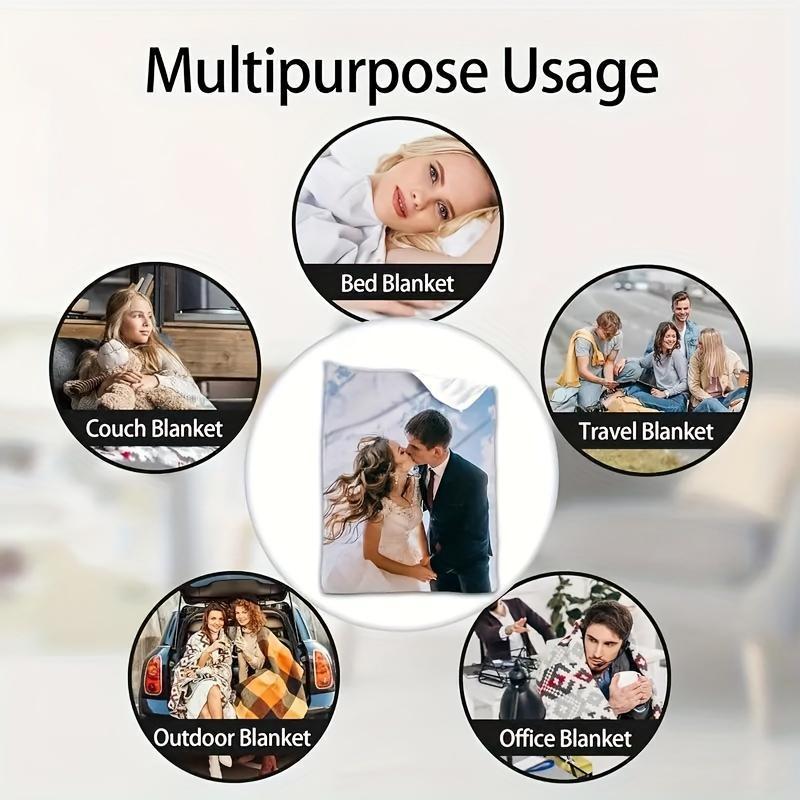 Personalized Flannel Blanket Soft Warm Custom Photo for Sofa Bed Outdoor Use