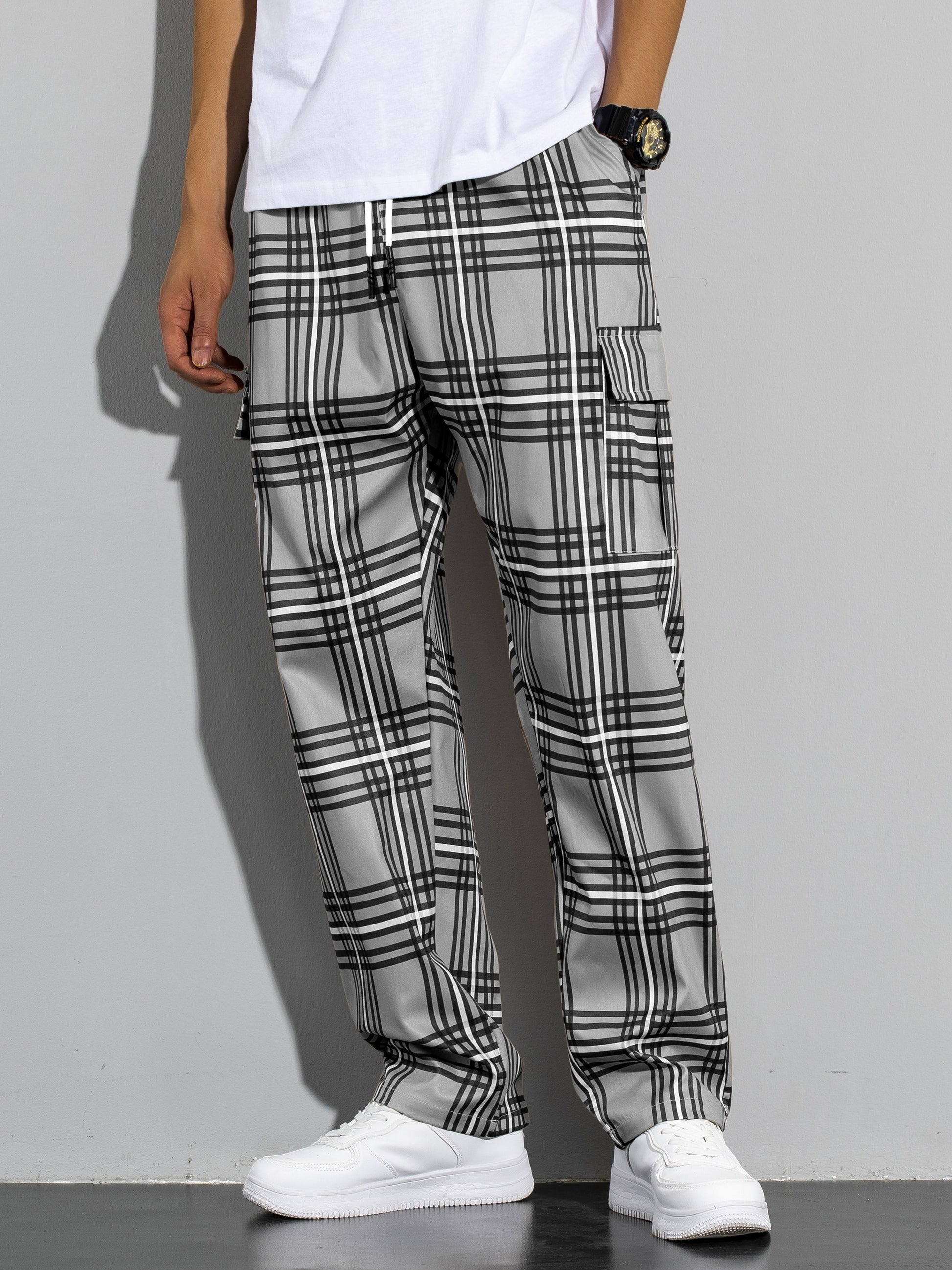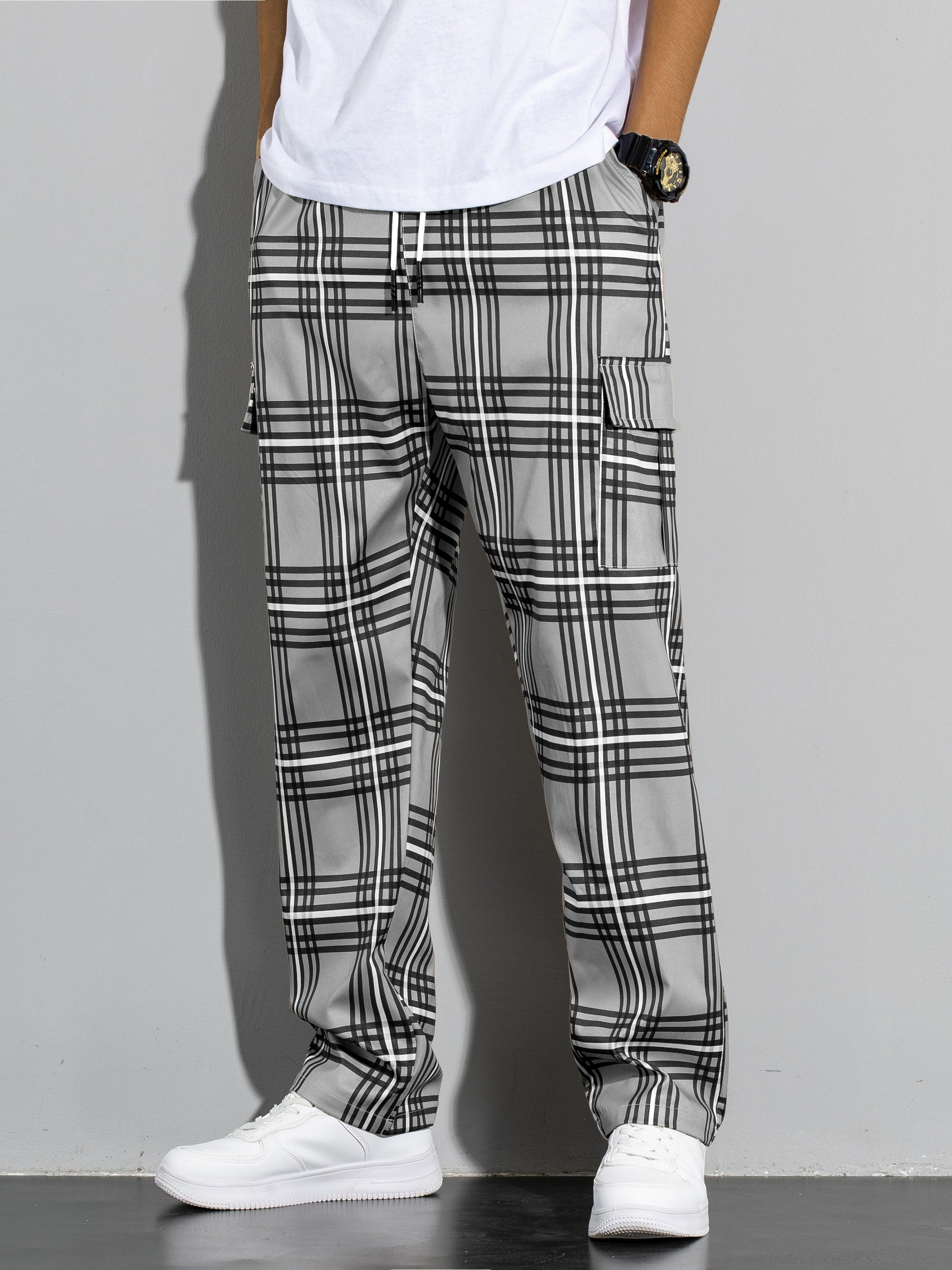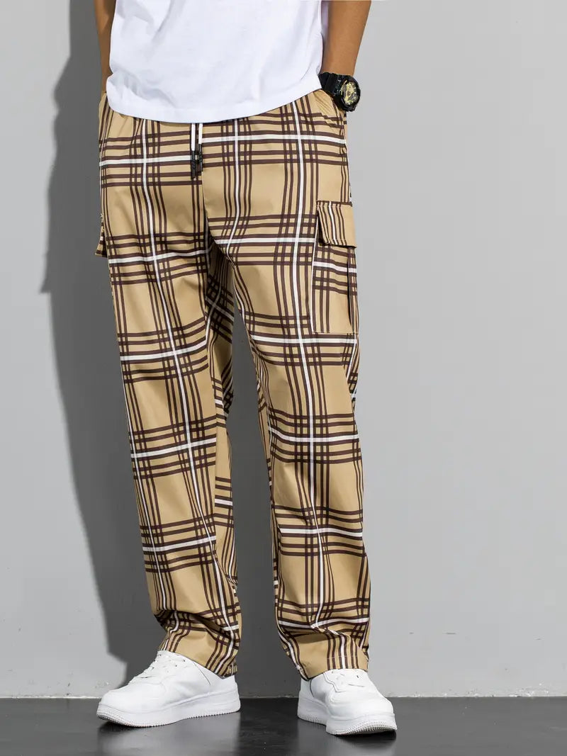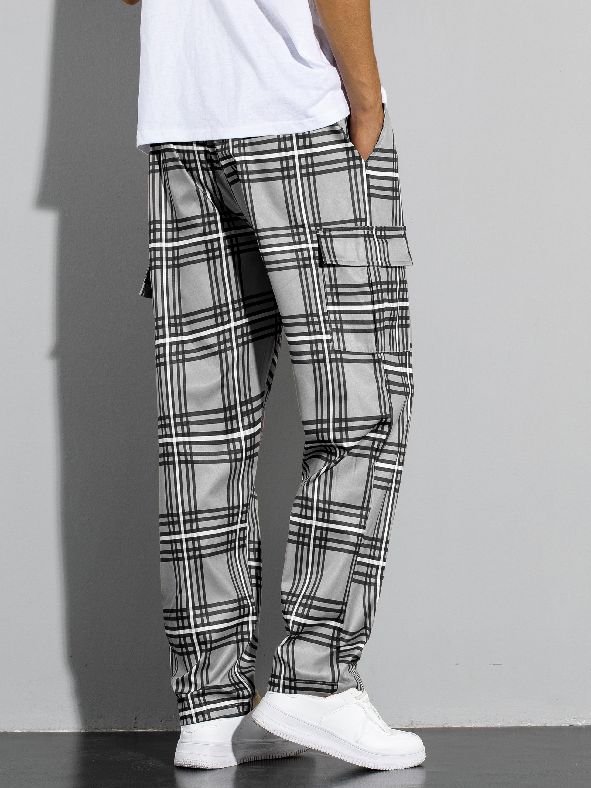 Adult Plaid Cargo Pants with Multiple Pockets and Slight Stretch Fabric