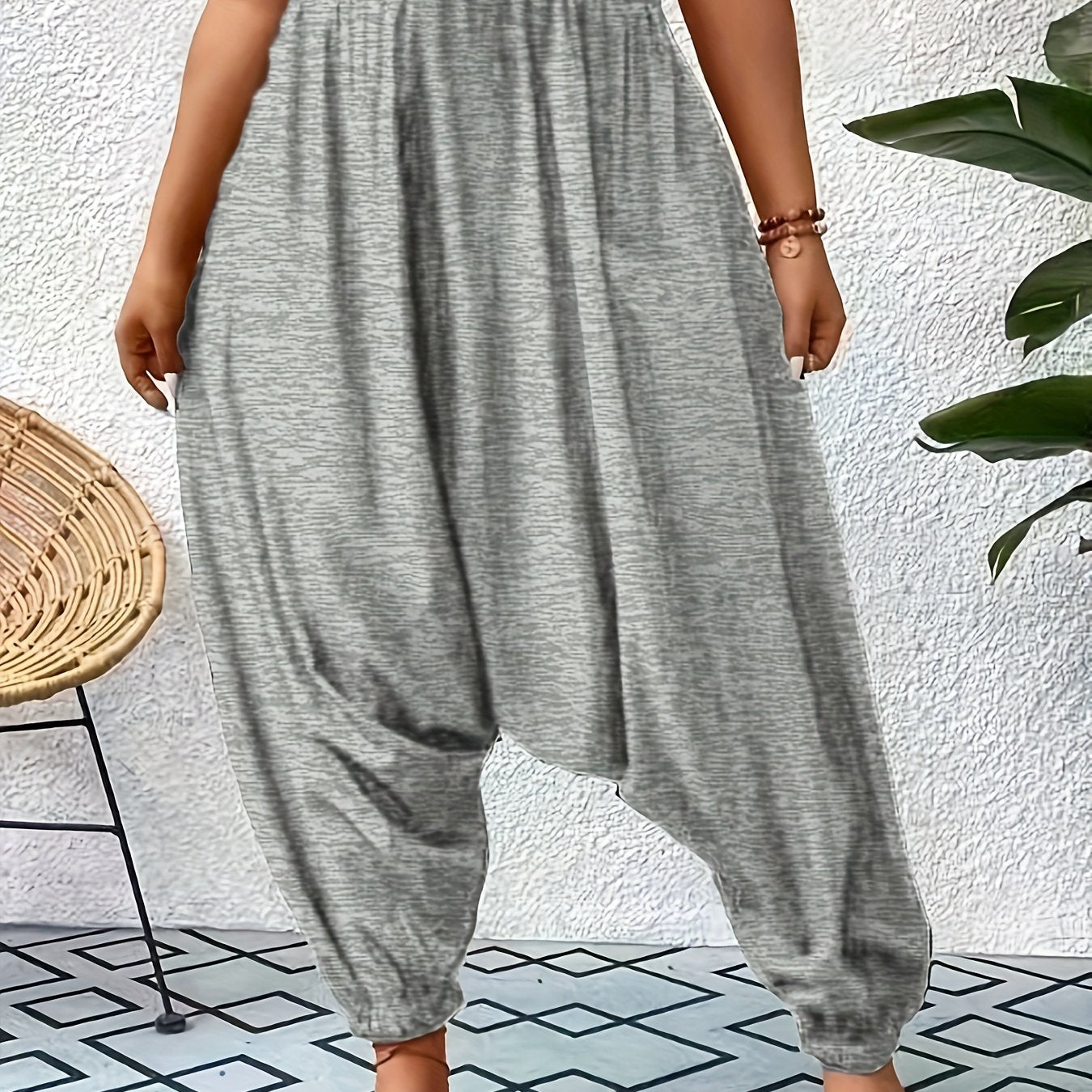 Plus Size Cotton Ruched Baggy Harem Pants for Spring and Summer Women