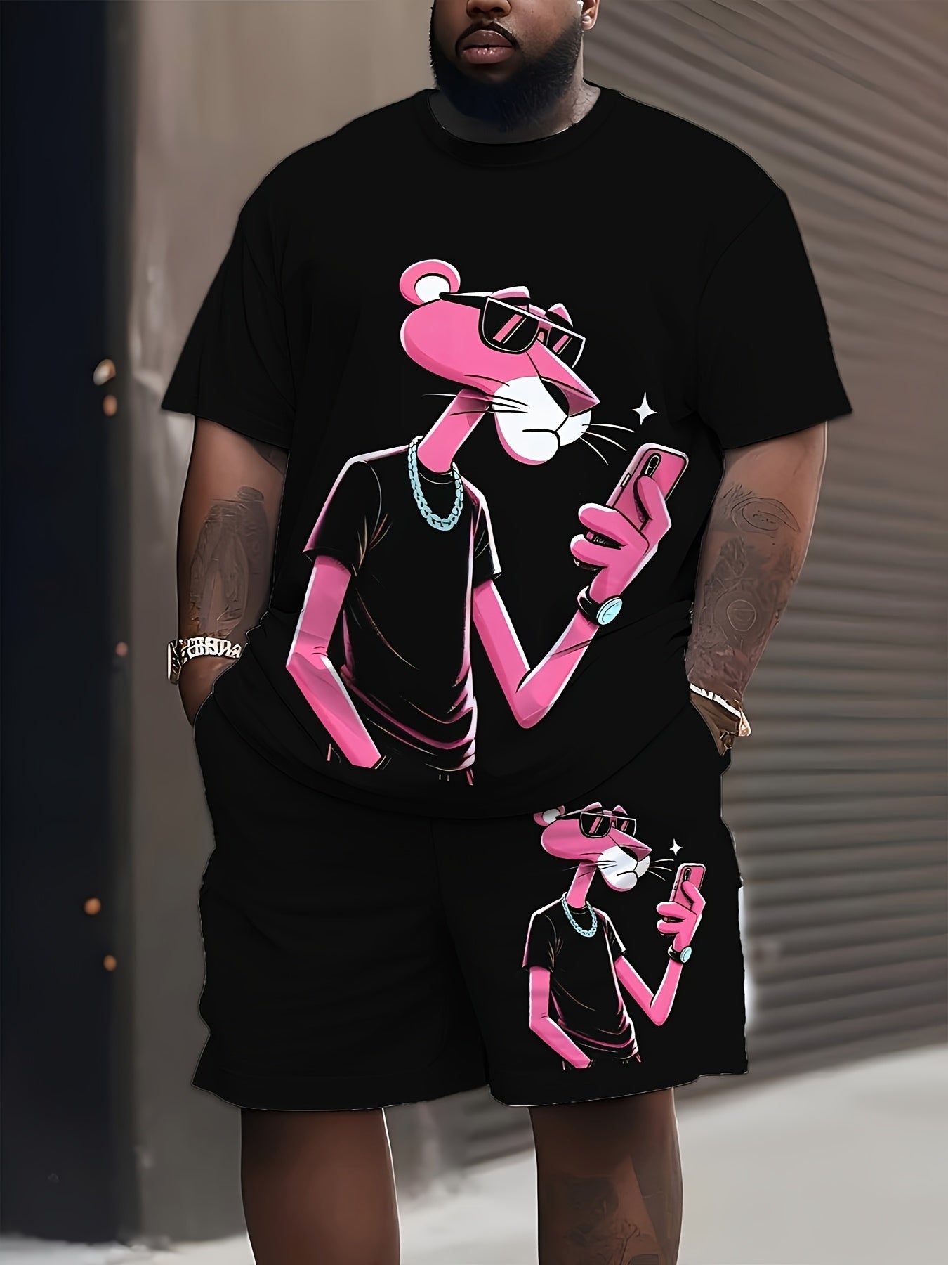 Plus Size Men's Casual Sports Outfit Short-Sleeve Shirt and Shorts