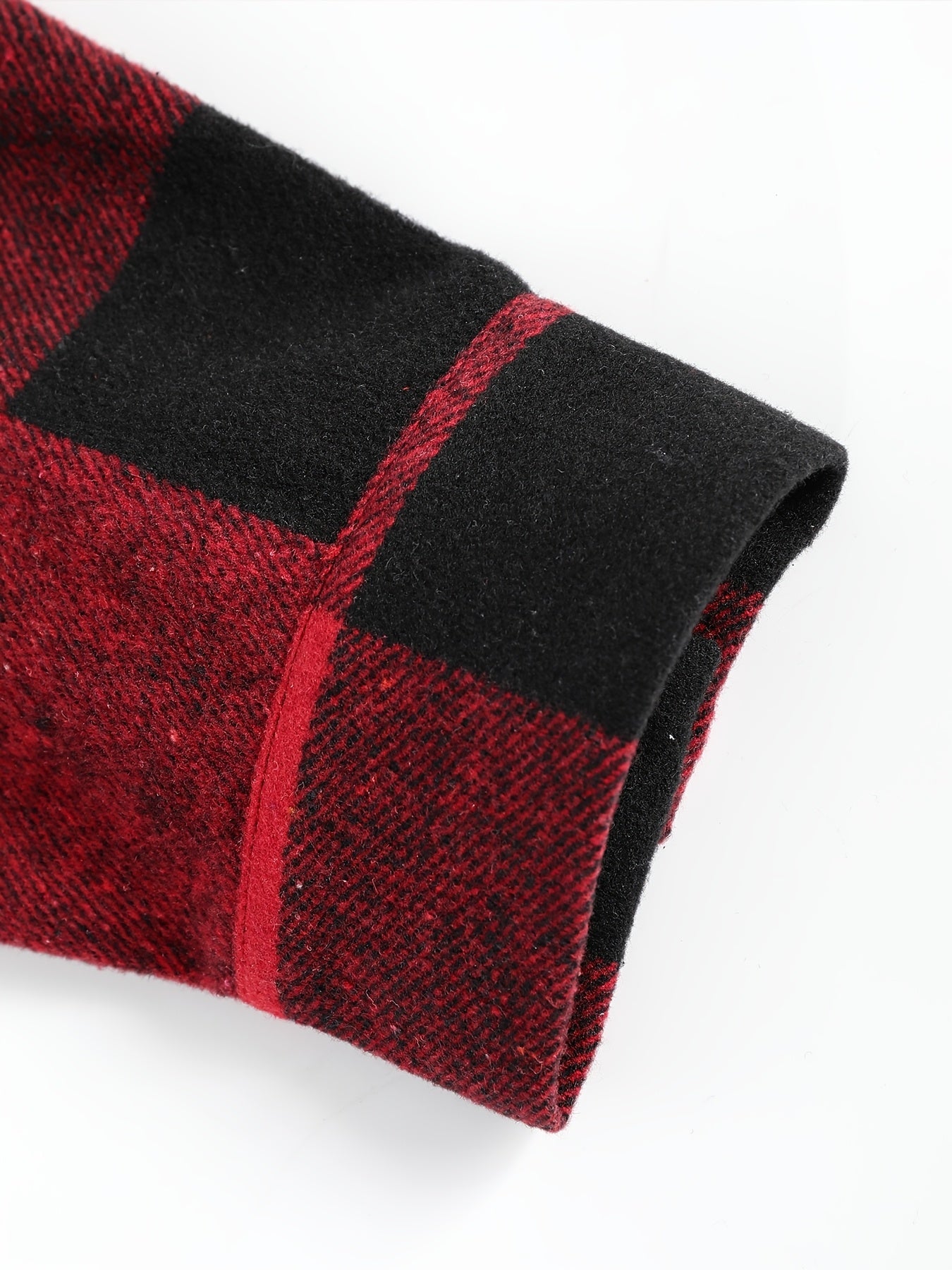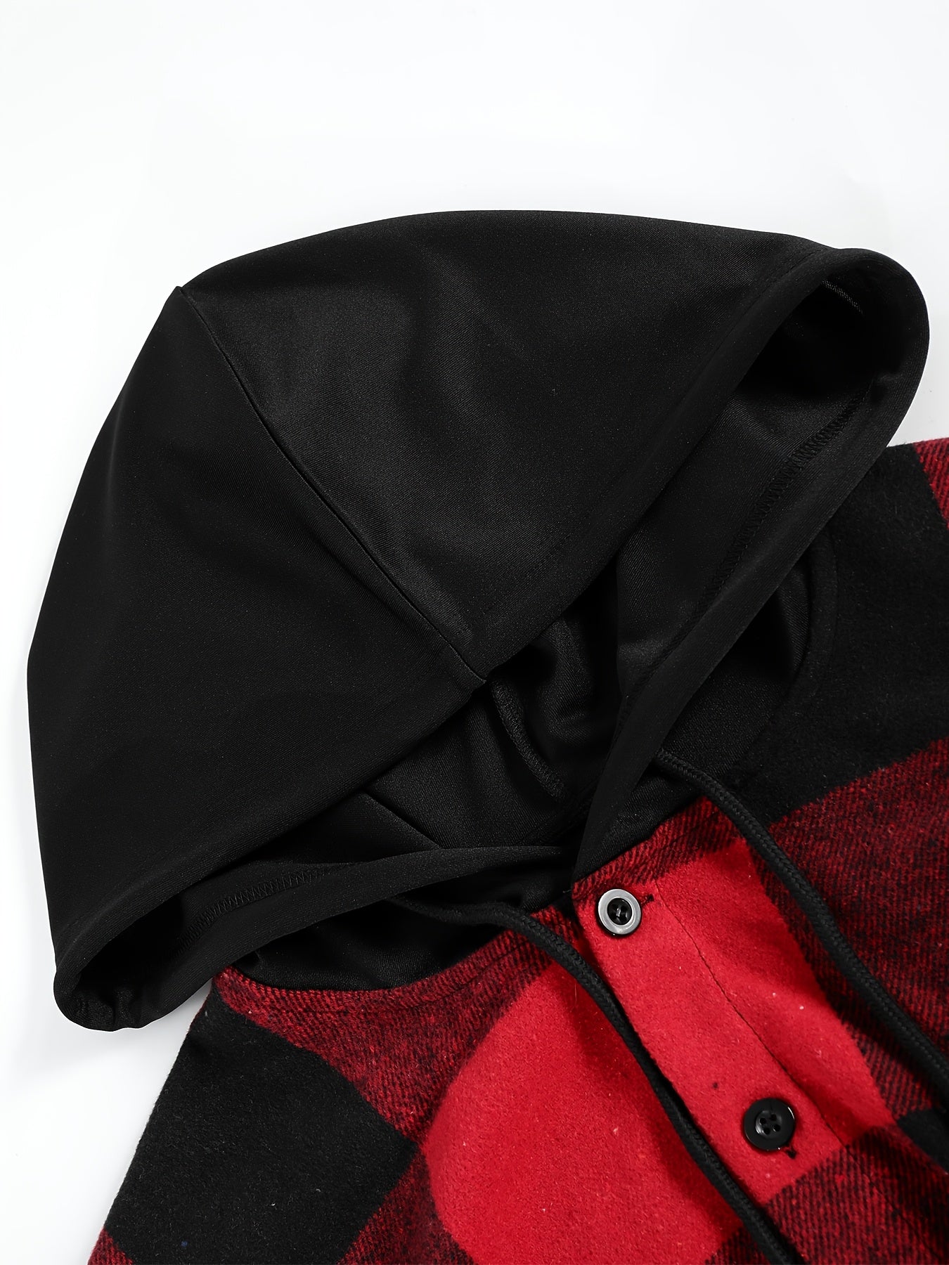 Plus Size Men's Plaid Hooded Shirt Long Sleeve Button-Up Polyester Blend Casual