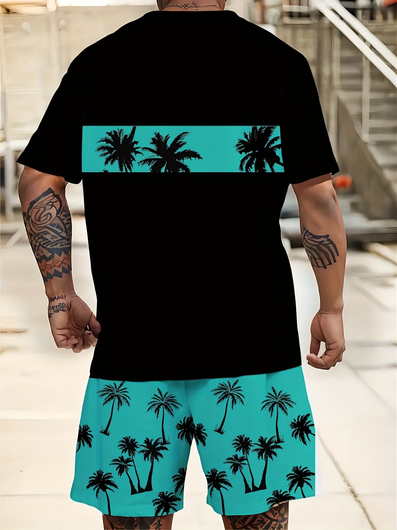 Plus Size Men's Casual Set Short-Sleeve T-Shirt and Shorts for Summer Beach