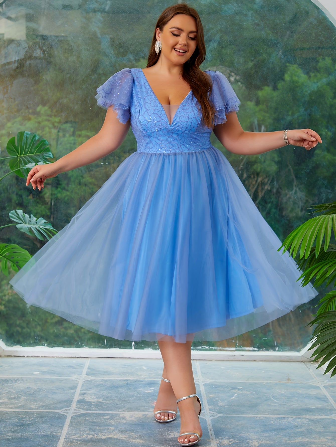 Plus Size Mesh Backless Cinched Waist Swing Dress for Party Womens