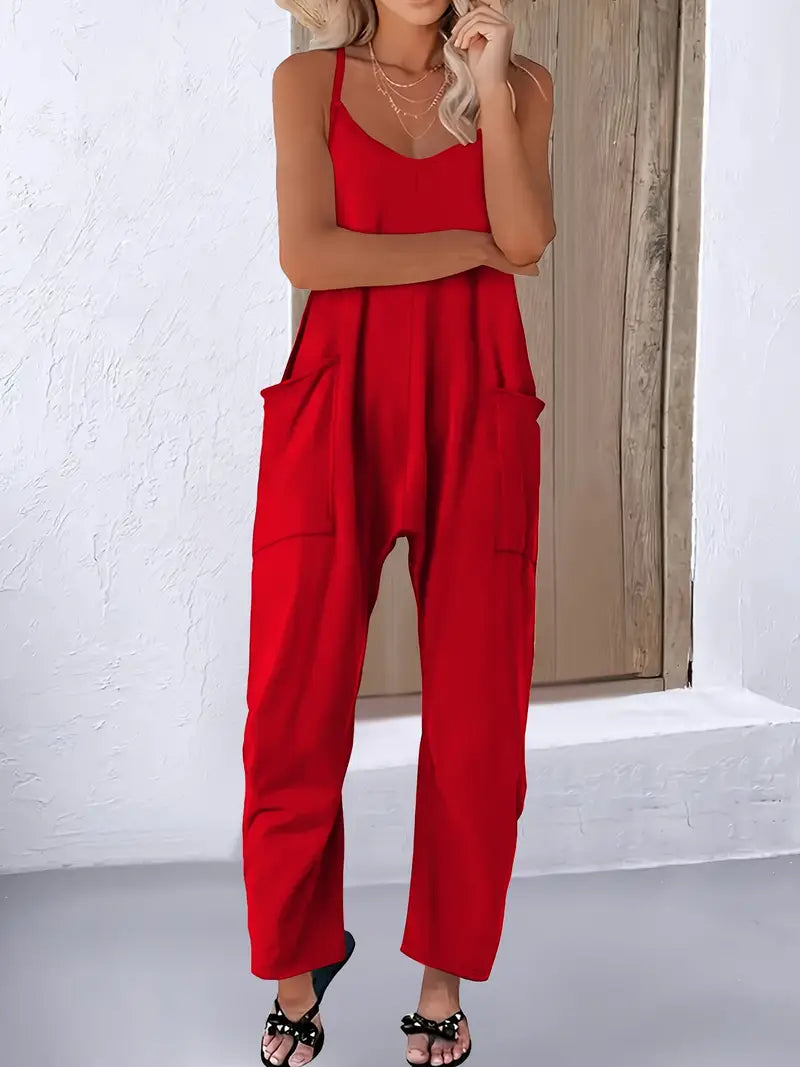 Plus Size Sleeveless Jumpsuit Polyester Blend Wide Leg Casual Summer