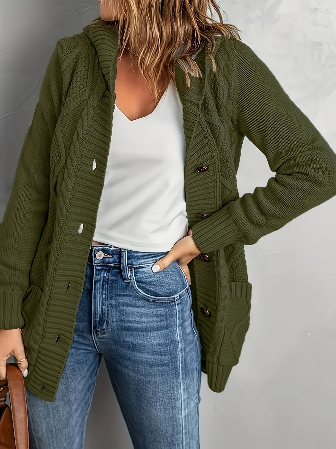 Plus Size Women's Cable Knit Hooded Cardigan Long Sleeve Fall Casual Sweater