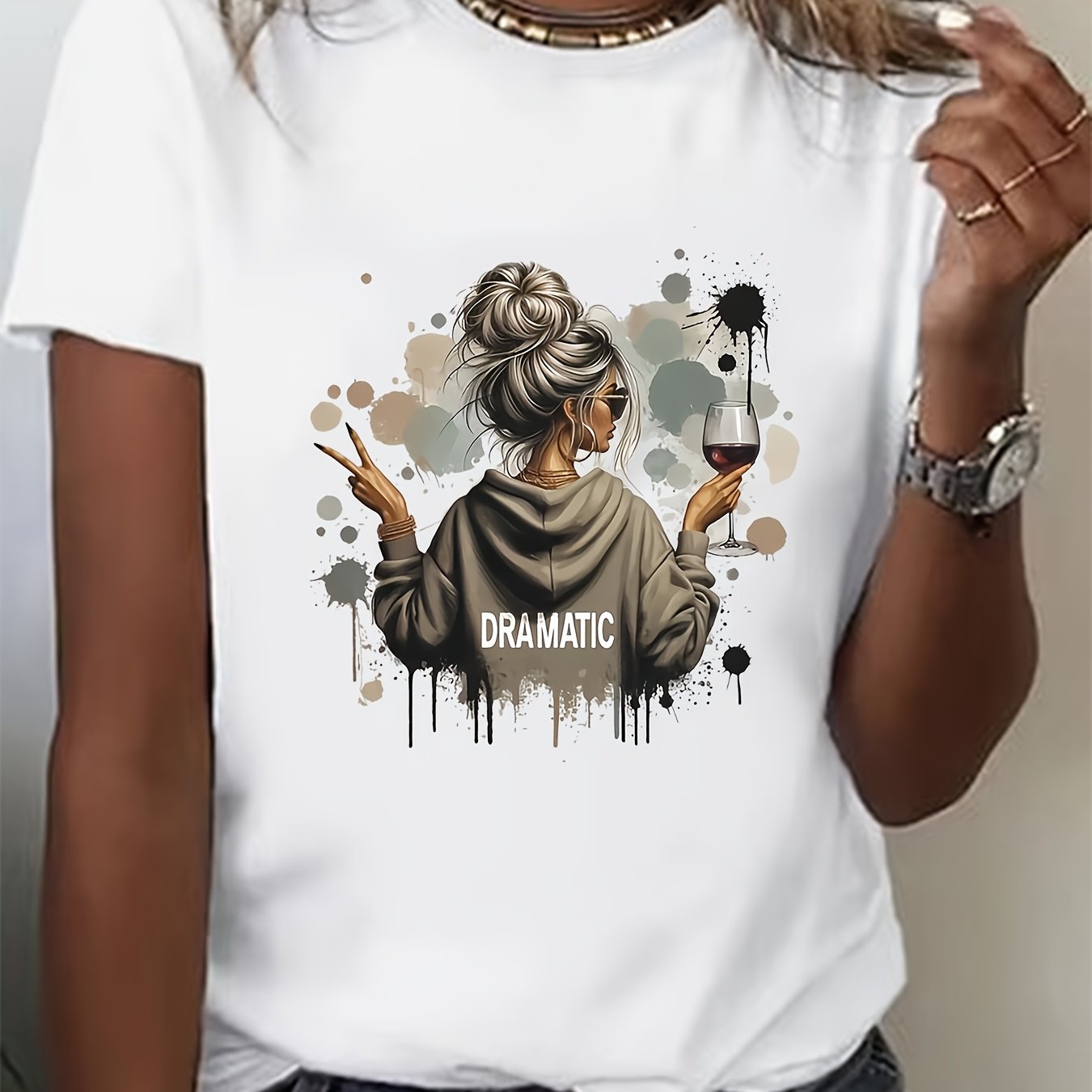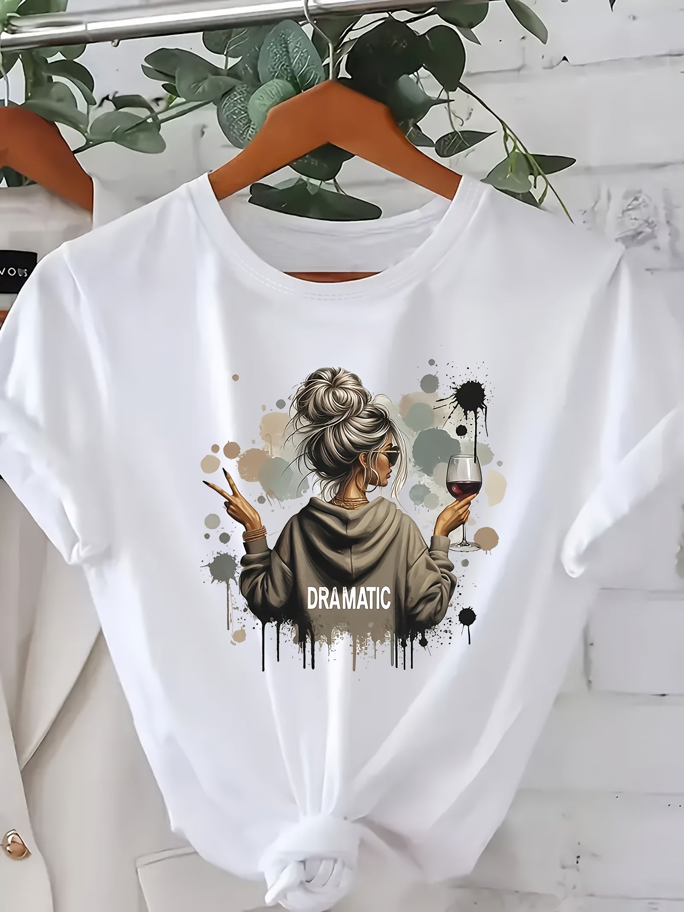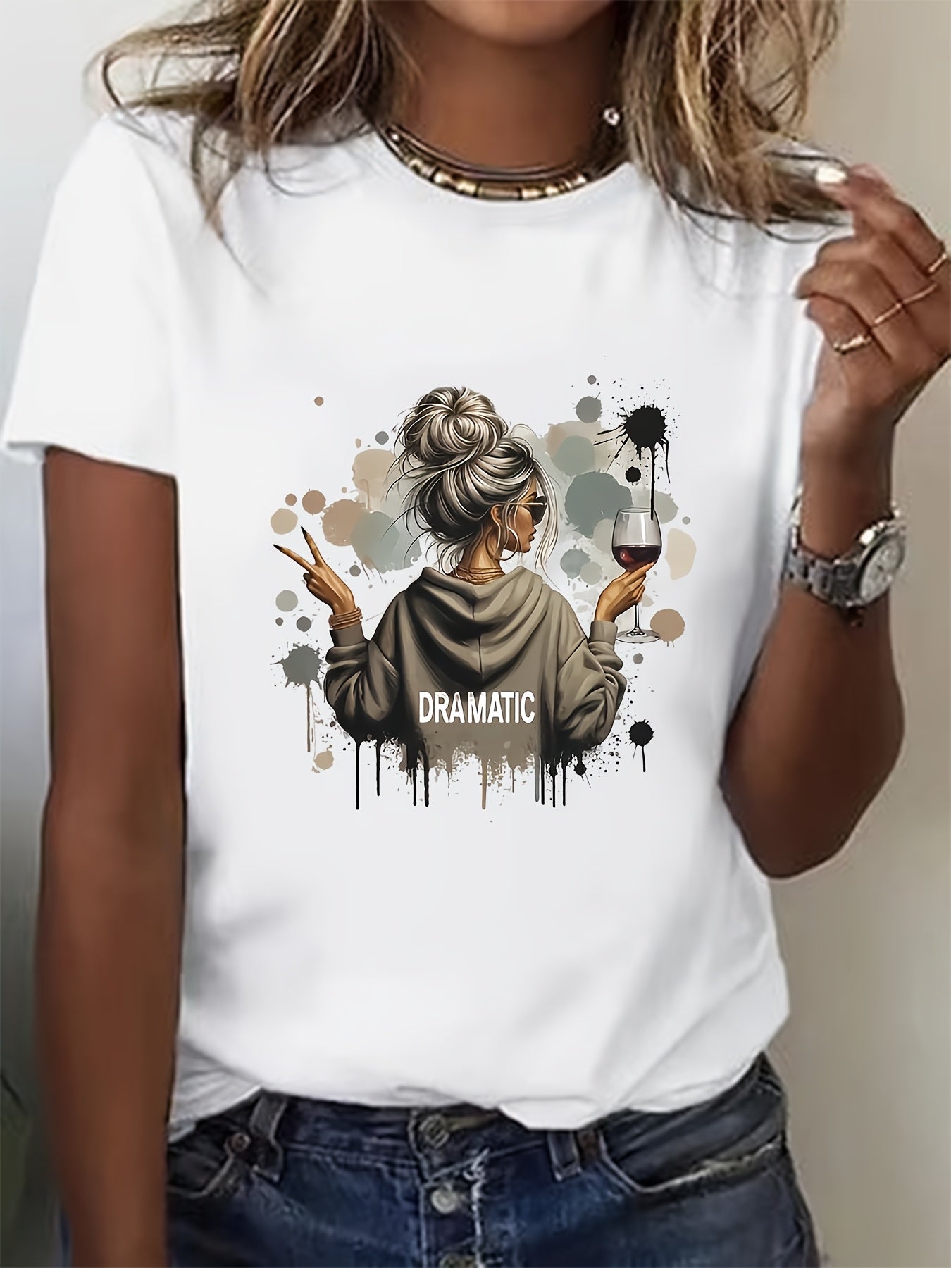 Plus Size Women's Casual Sports Wear Short Sleeve Knit Polyester Applique