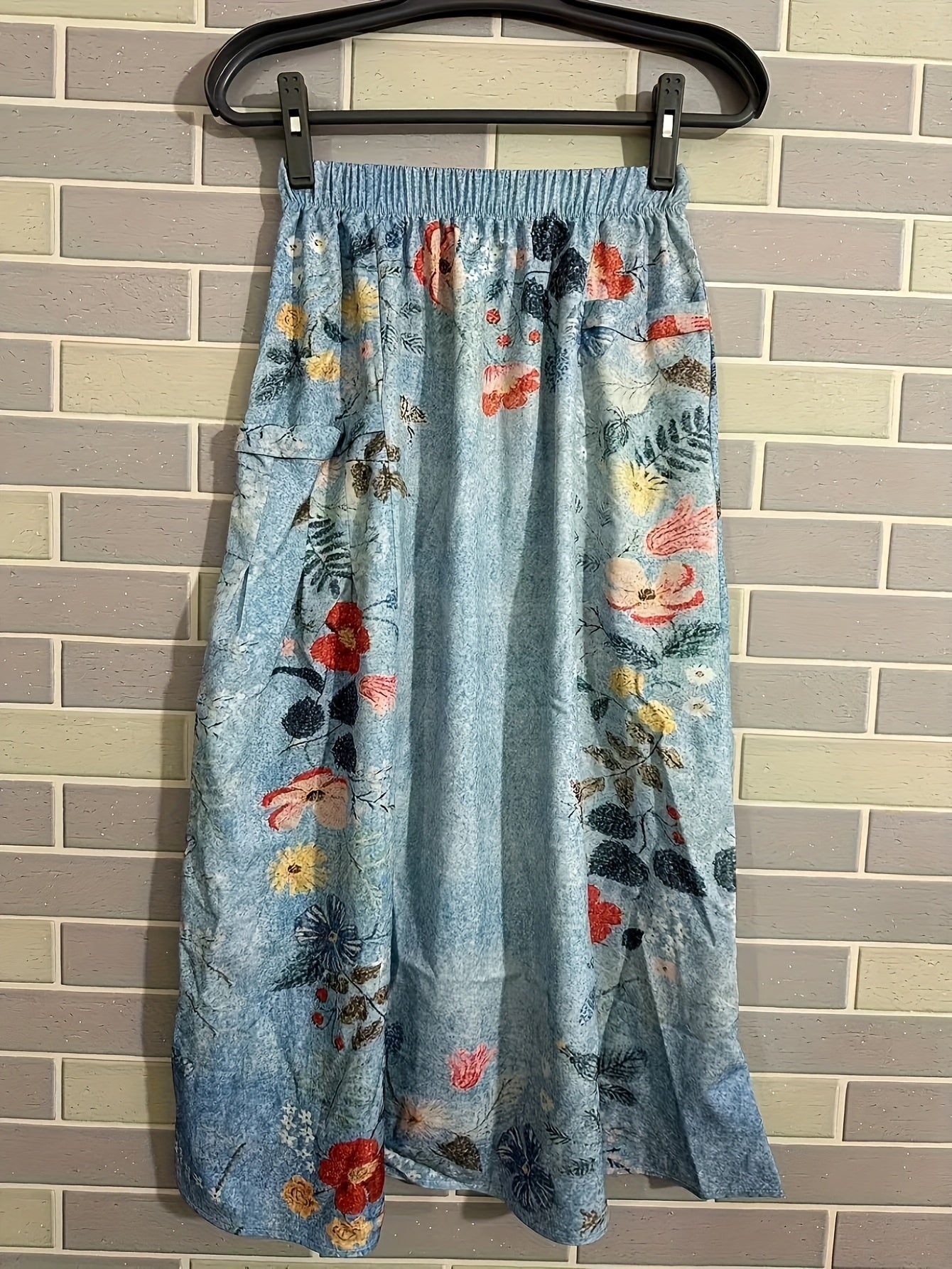Plus Size Women's Floral Print Pencil Skirt Casual Straight Pockets All-Season
