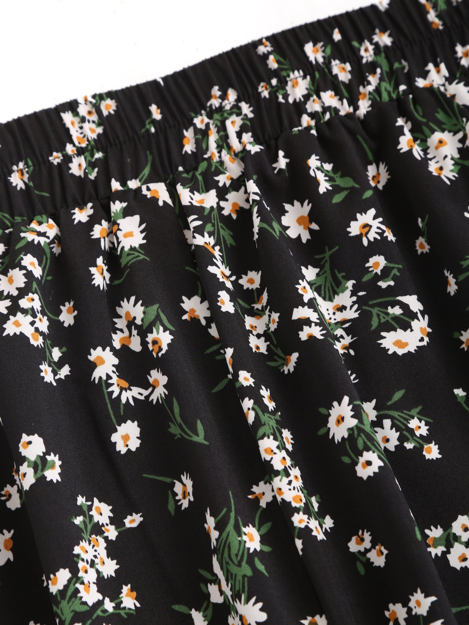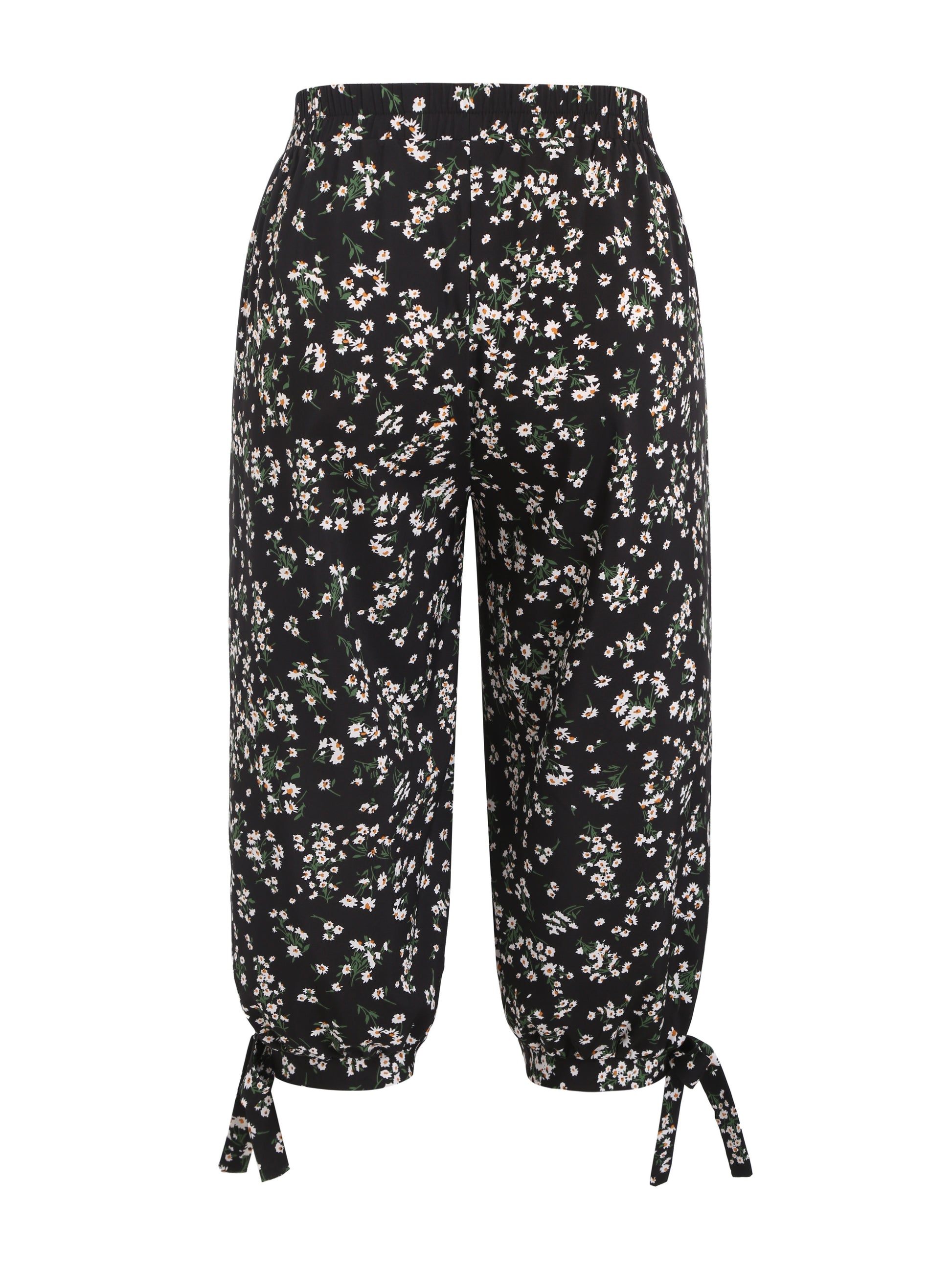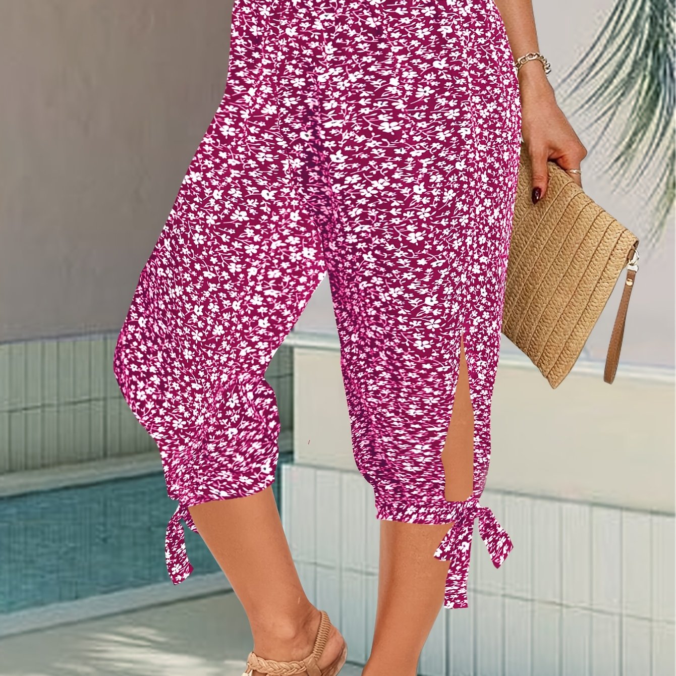 Plus Size Women's Floral Wide Leg Waist-Cinched Split Pants