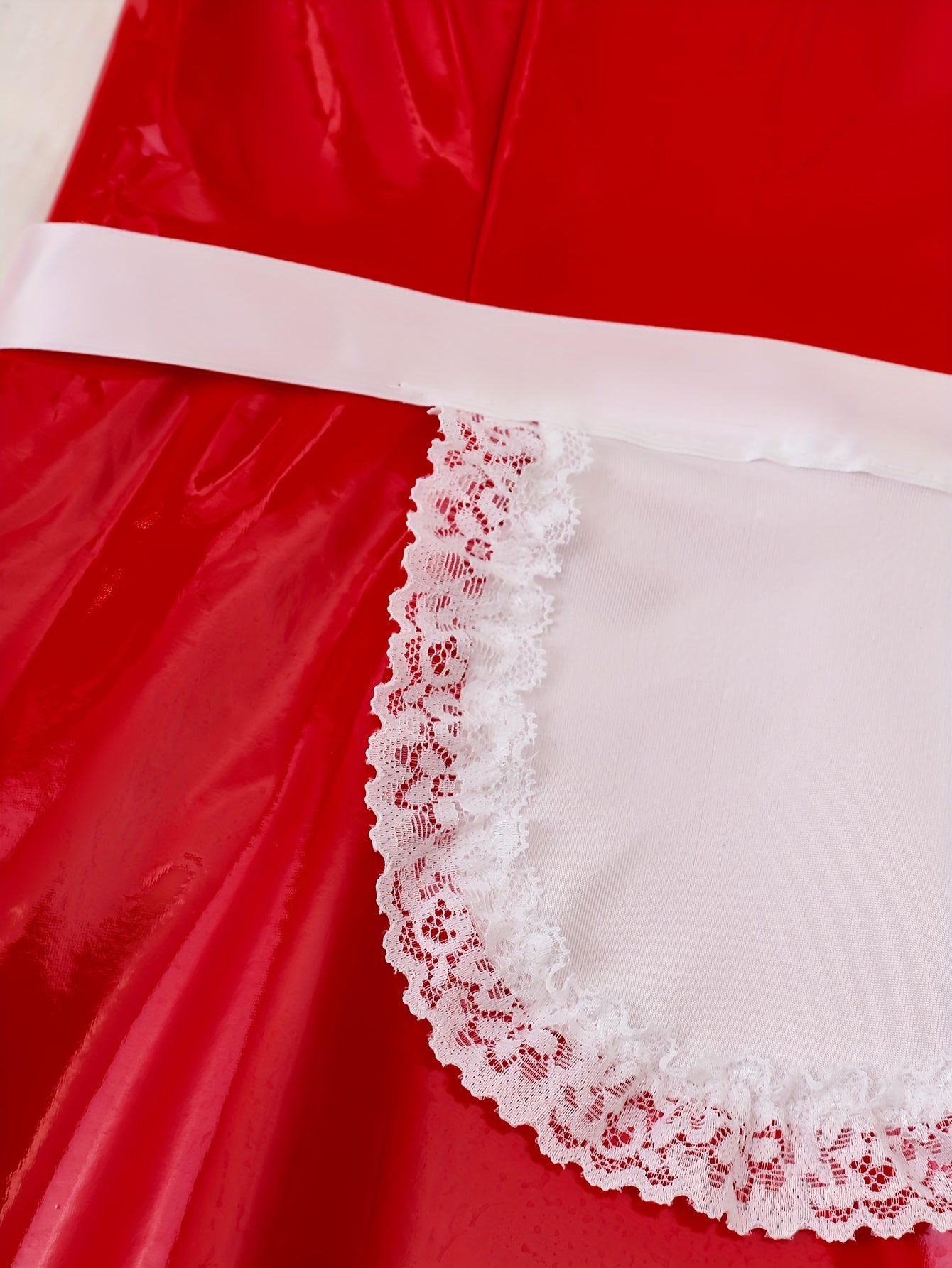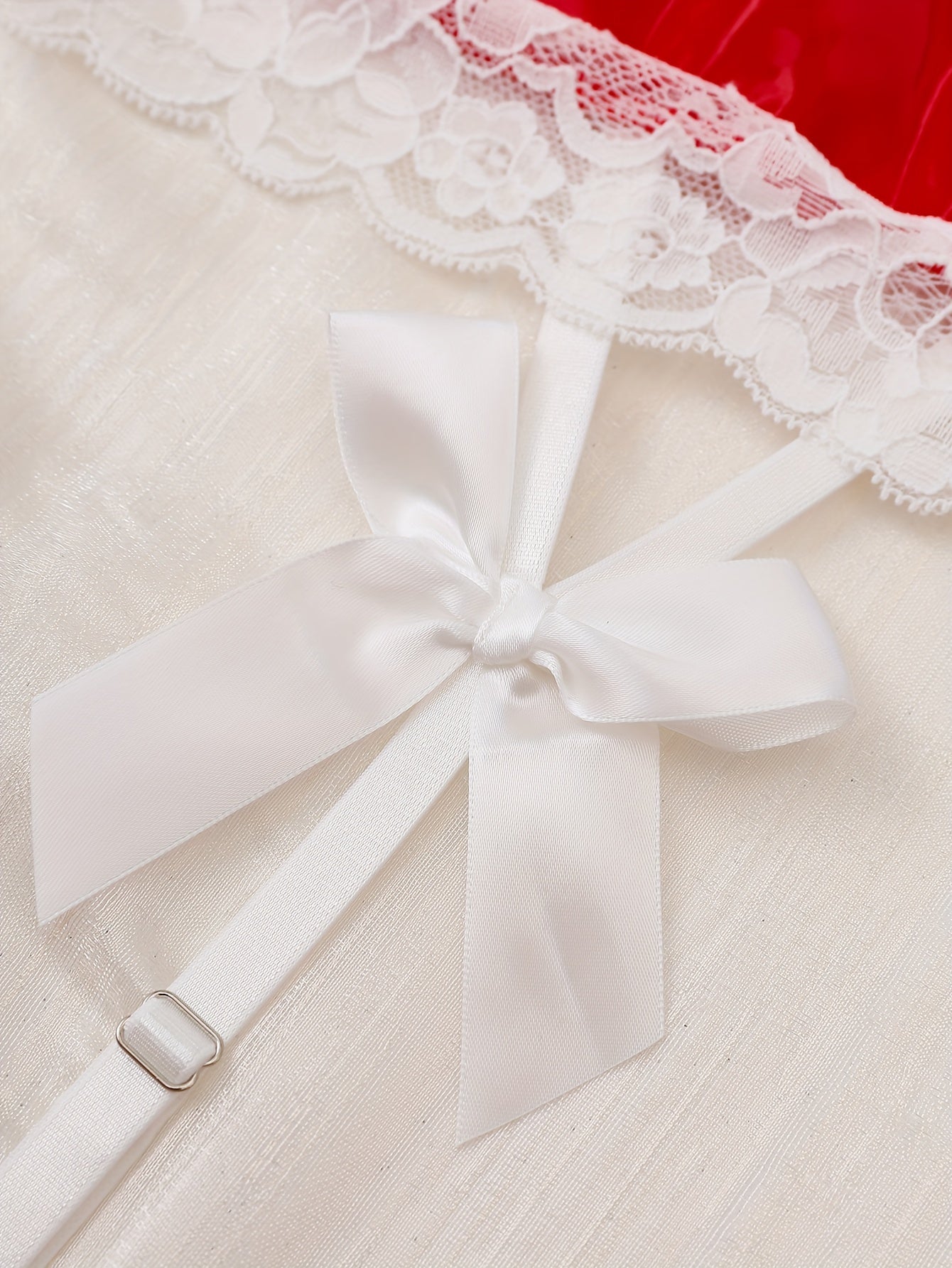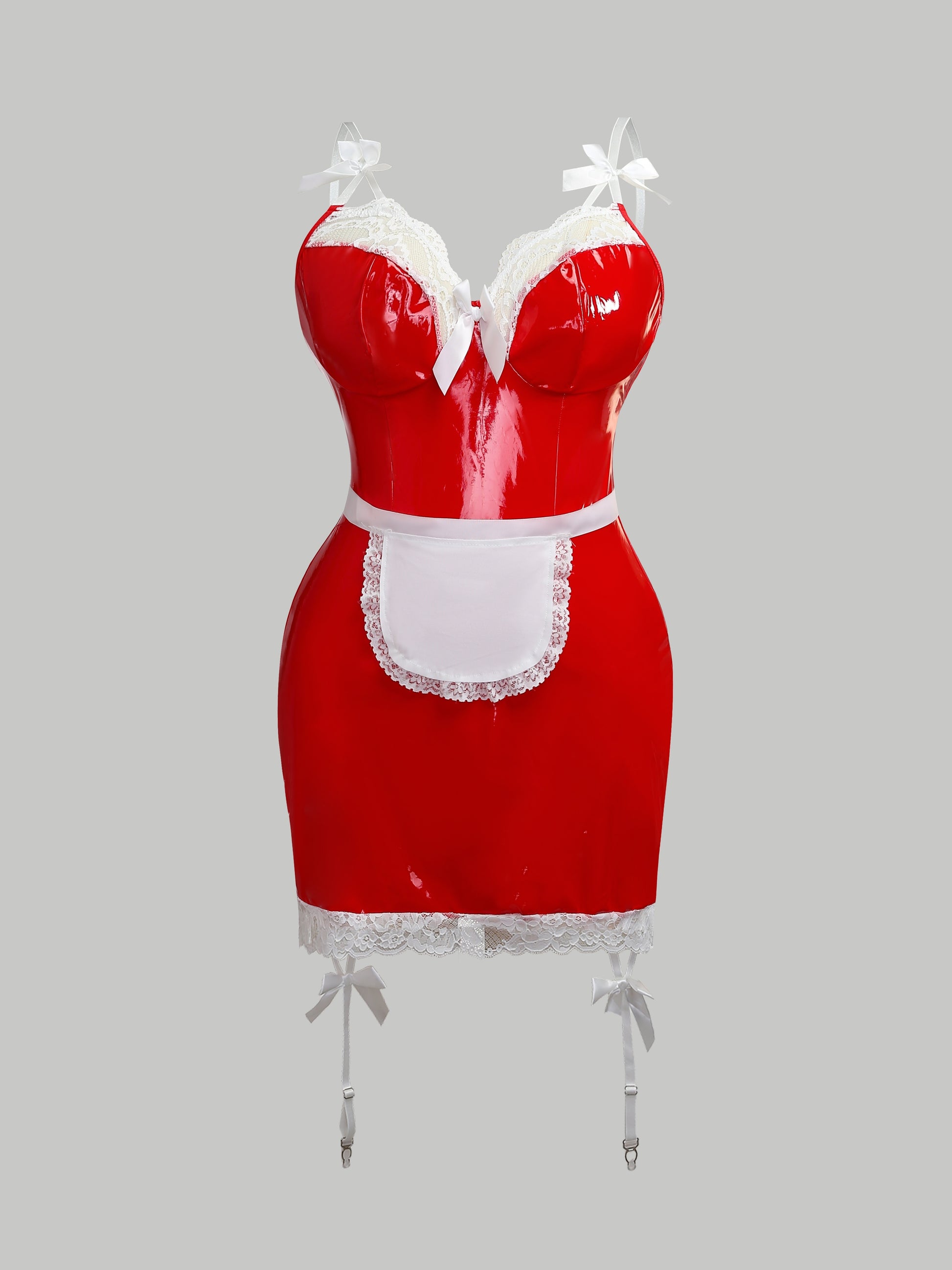 Plus Size Women's Lace Bow Front Lingerie Dress with Apron Costume